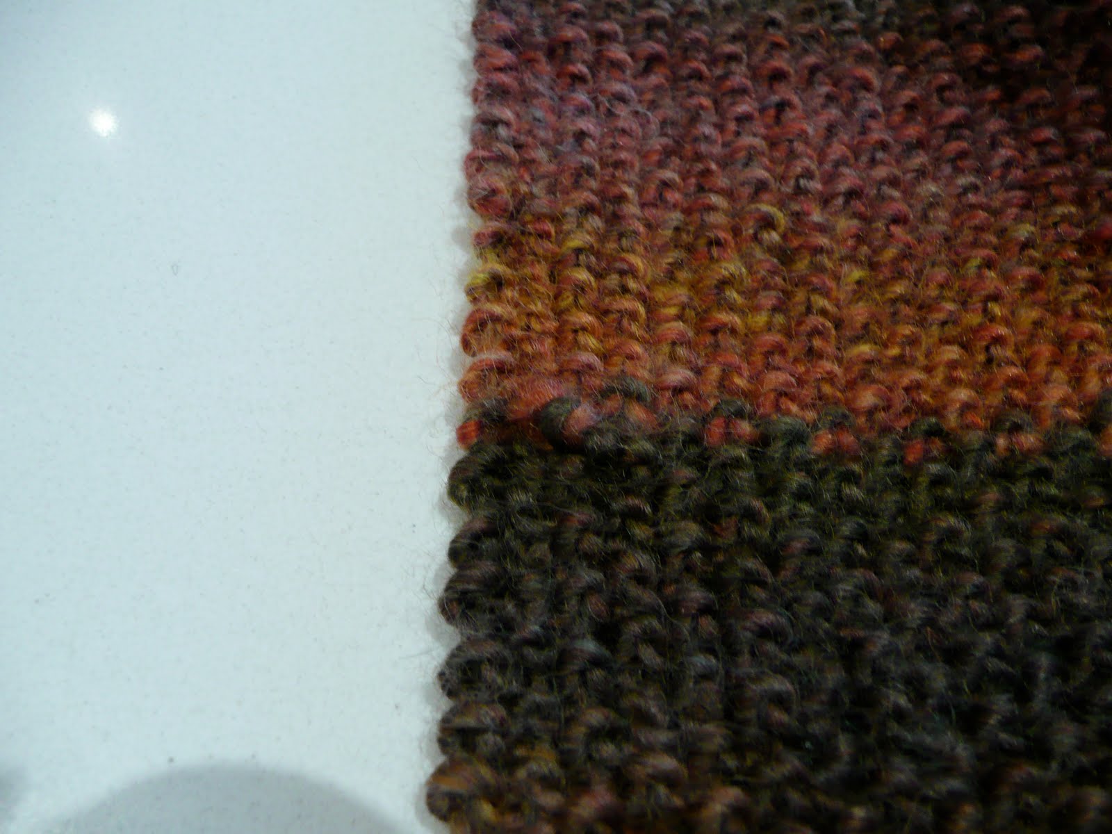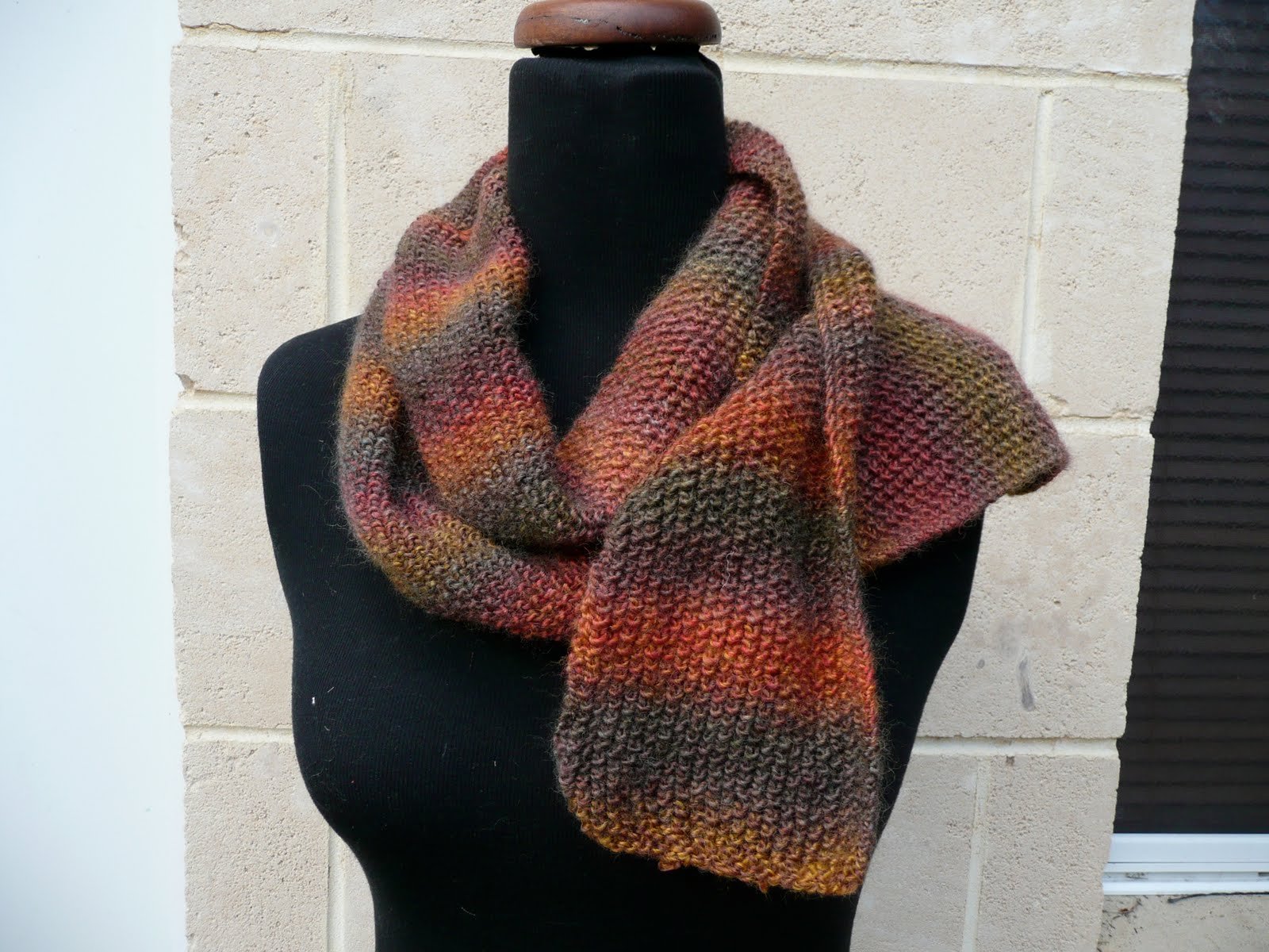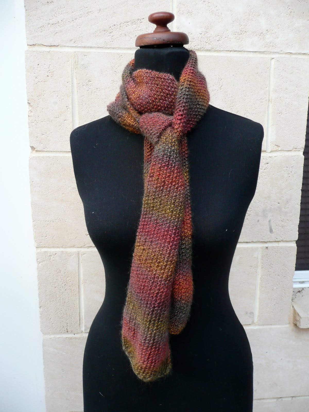 When it comes to knitting scarves where there is not really a defined front or back, the knots and joins can sometimes be a problem as you can’t just hide them in at the back. I usually just tie a really tight and tiny knot and then weave the ends in a best I can (see close-up picture). If you can hide the very fluffy end bit inside a strand of wool in the knitting, so much the better. I know this sounds nit-picking (or should I say knit-picking?!), but these little finishing touches can make a big difference between an obvious homemade job and a smart and beautiful piece of wearable art.