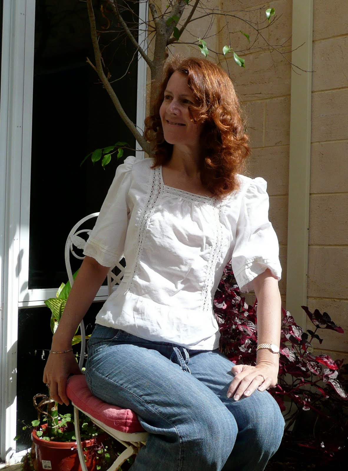 This New Look pattern is an excellent basic pattern with no frills. It is a simple matter to add interest with a few minor variations. In this case I squared the neckline, altered the sleeves by puffing them up, inserted horizontal and vertical crochet strips on front and back, added a few pin-tucks, made a front bottom panel longer and gathered it to fit, added border crochet strips… Well quite a few variations, but I was just playing with it at the time and the end result seems to be a keeper in my wardrobe as it has resisted every seasonal purge. Admittedly white/off-white lace is rarely tossed out by me as I’m strangely drawn to it. The whole aura of nostalgia and romance as represented in late Victorian era photographs and illustrations has such timeless appeal, no?