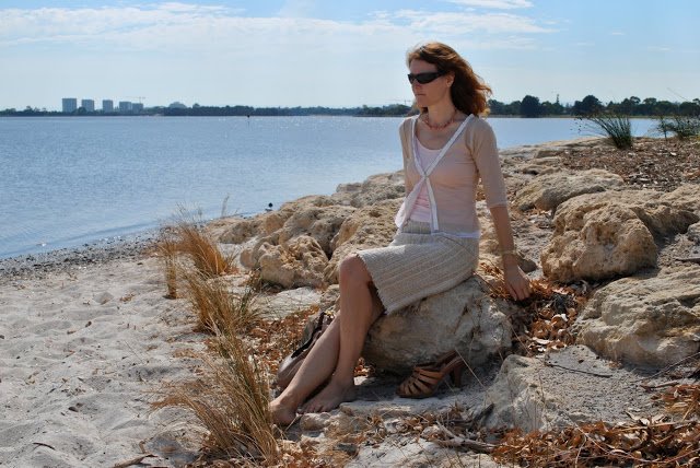 I loved the cardigan and skirt combo. Your mother's fabric is sensational. Weaving takes the patience of Job.