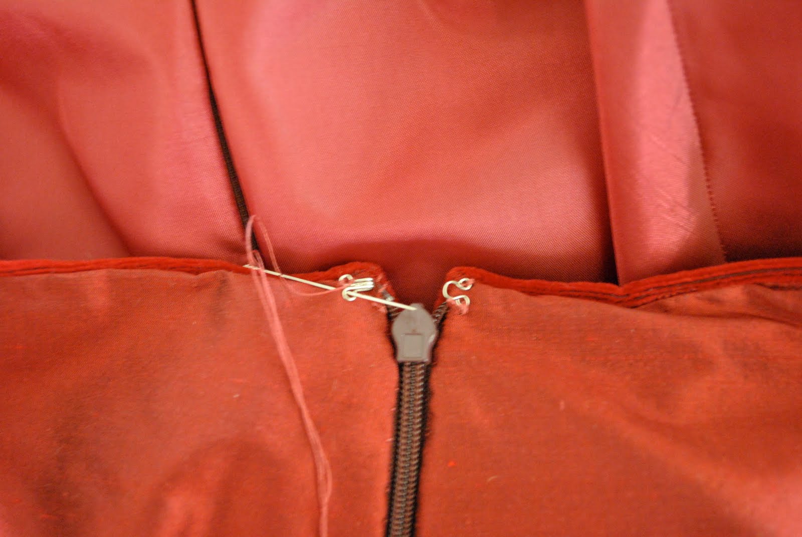 Here is the inside of the finished bodice, with lining sewn in by hand to the waistline and zip tape…