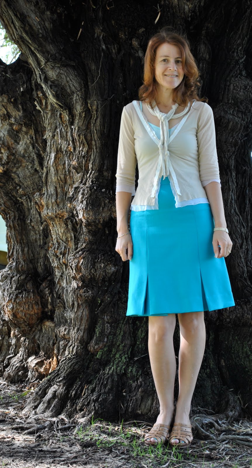 The colour of your skirt is simply stunning. I love the outfit, you look great.