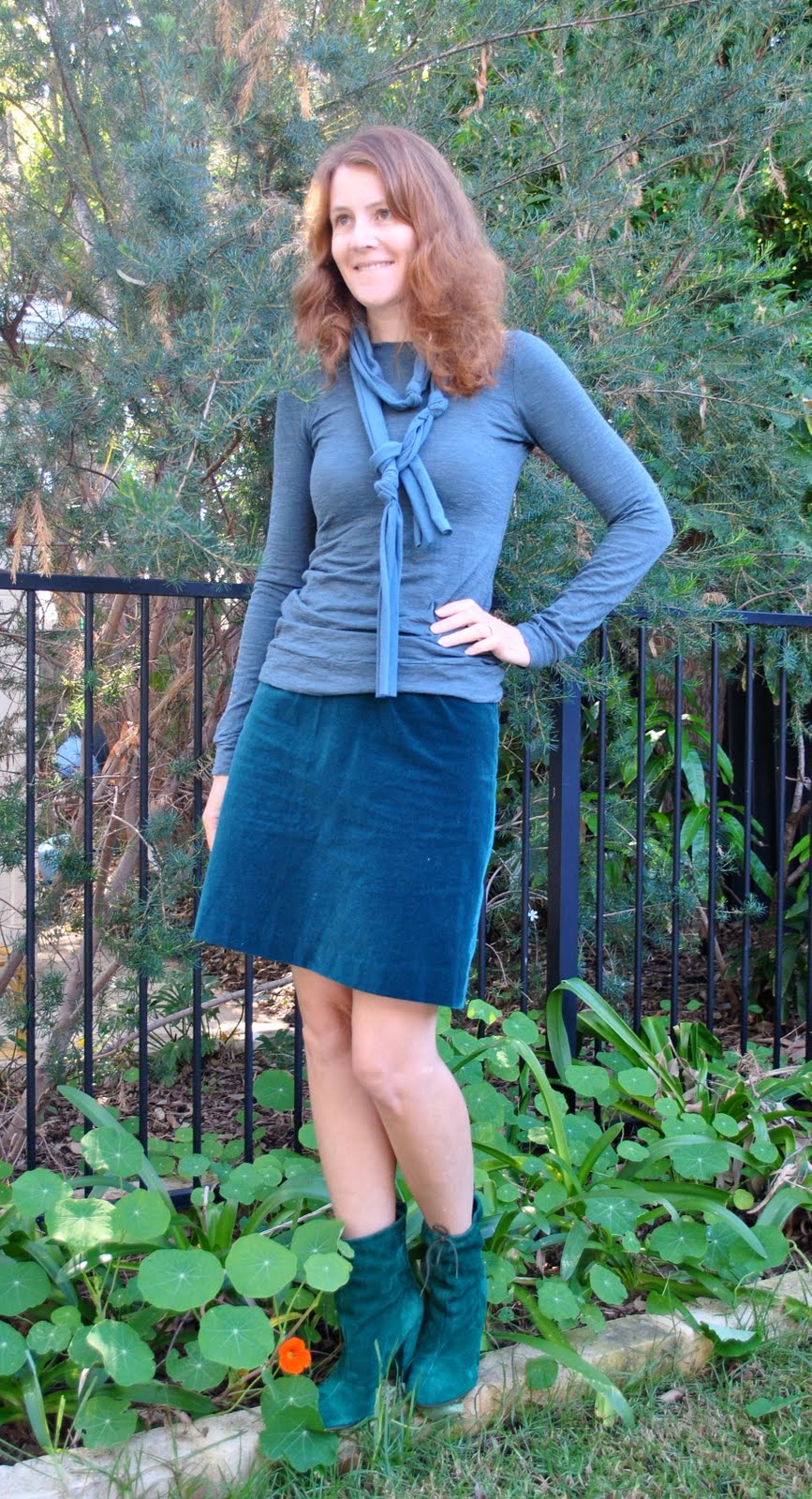 Skirt; Vogue 7303, bottle green cotton velveteen