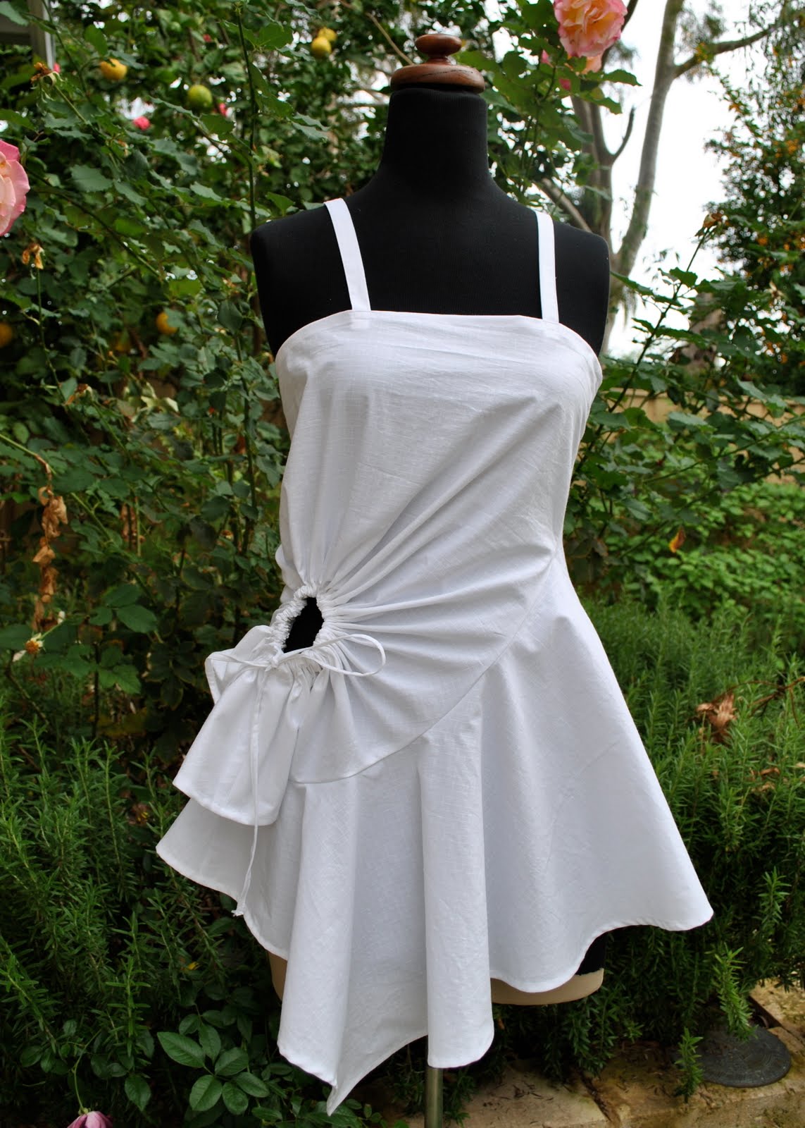 The latest in the Pattern Magic toiles; this one is on page 11. There is a minuscule chance I will wear this toile. Maybe it is a bit young for me; much as I detest that phrase “age appropriate dressing” that is so stifling to feminine flair and creativity in apparel. I can’t bear that women should be forced into a pigeon-hole by their age group… however that being said I’m not sure this top would do for me. Perhaps I should re-phrase that; not too “young” for me, but too … flirty and girly. Too cute. I’m too tall for cute. As it happens my daughter has already asked if she can have it, so it will not go wasted…