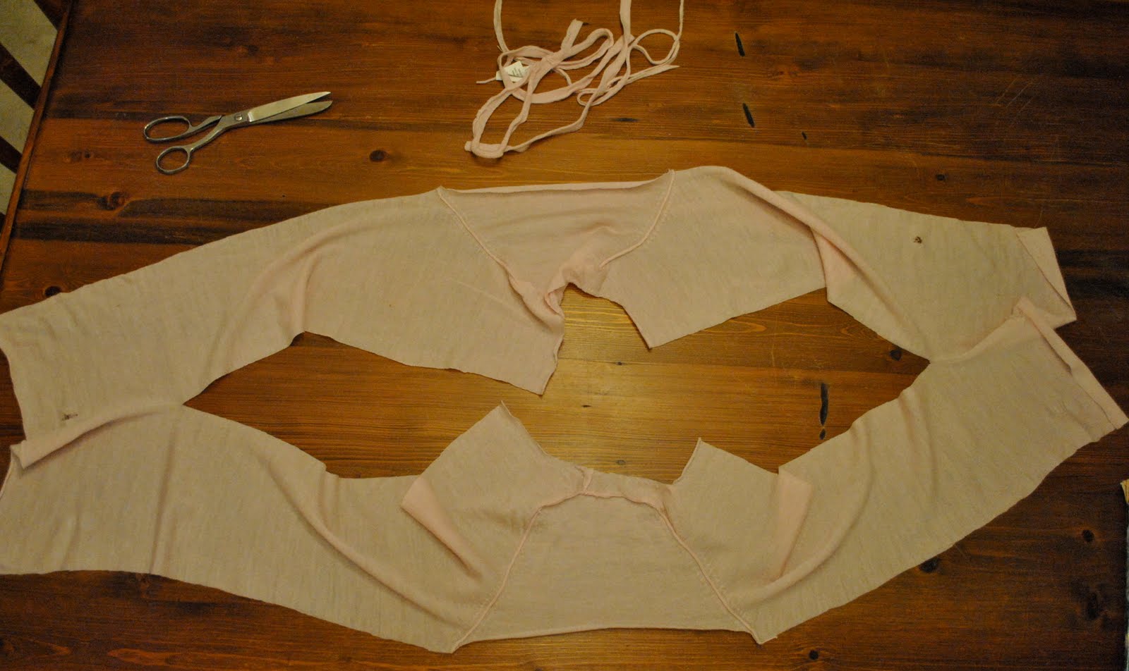 With the hole-y body of the top I removed the neck edge, and cut off the side seams.