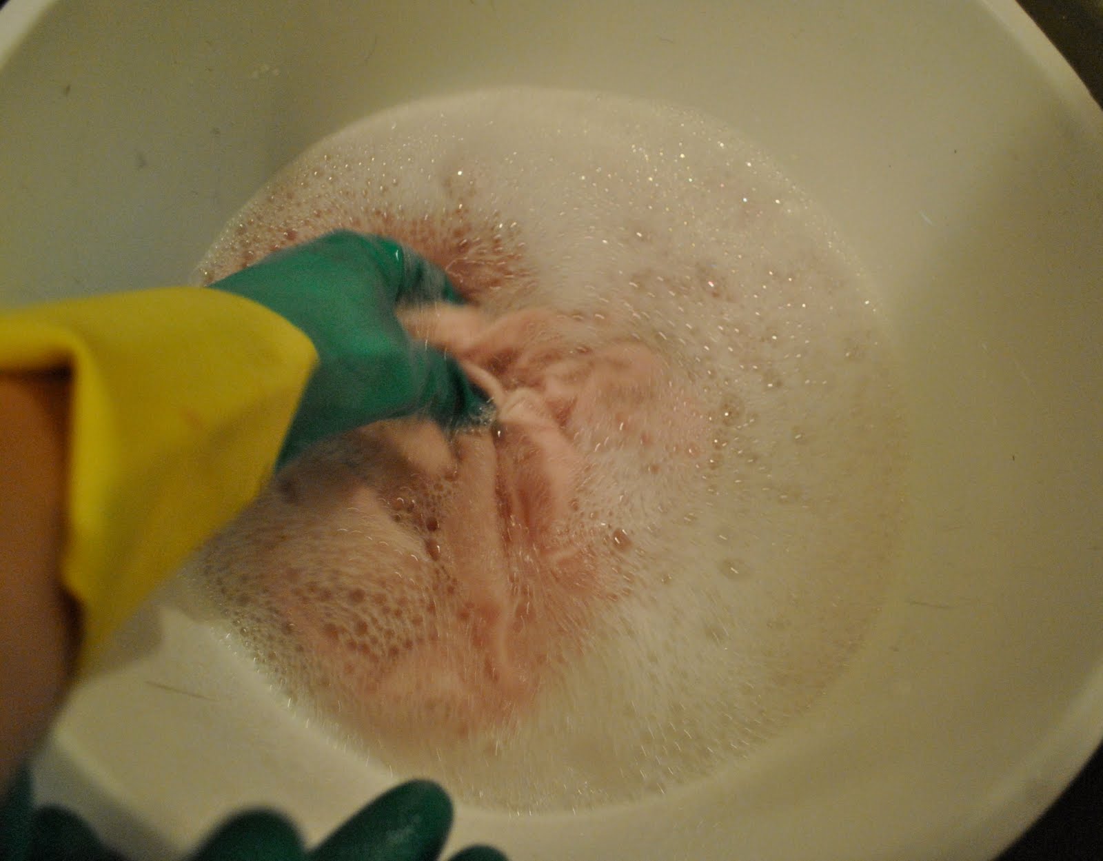 Dunked the new scarf in HOT soapy water and did plenty of whooshing about (it’s a technical term) to felt up those raw edges as much as possible (have you ever tried to take a photo of your other hand swooshing fabric about in a bucket? It’s a little like the rubbing-the-tummy-while-patting-the-head thing; the same kinda tricky feeling…)