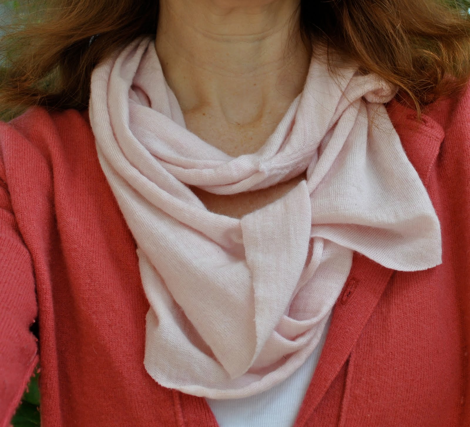 Voila; new hand warmers and a sort of artsy scarf…! This is a good way to re-use an old top that is a colour you love.