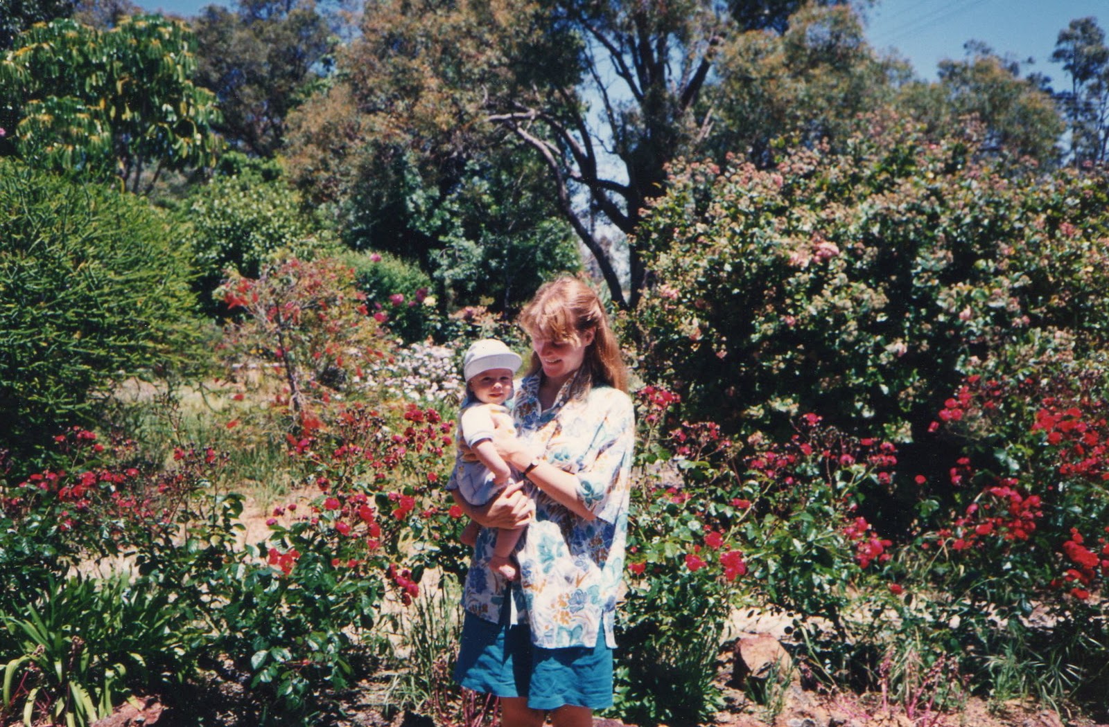 This photo is marked in my album “4 1/2 months”, which is the age of our eldest son who I am adoring here; isn’t he sweet?  Ah, the days when I measured the age of the children even down to the half month!!