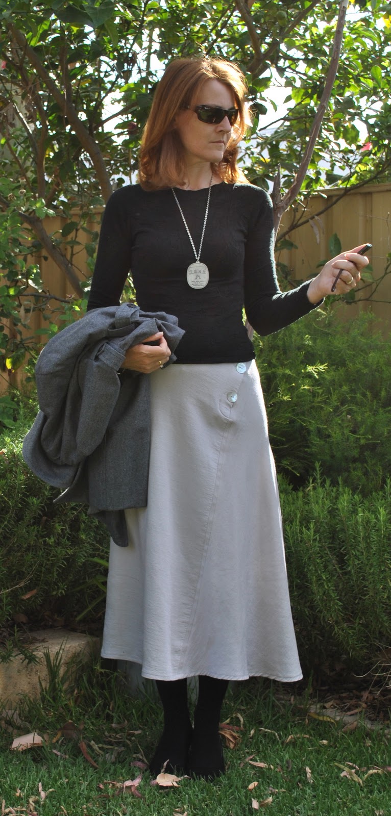 At the back I sewed the peaks of the pleats in 0.5cm seams, and sewed the little skinny centre panel to the pleated panels at their centre edges.