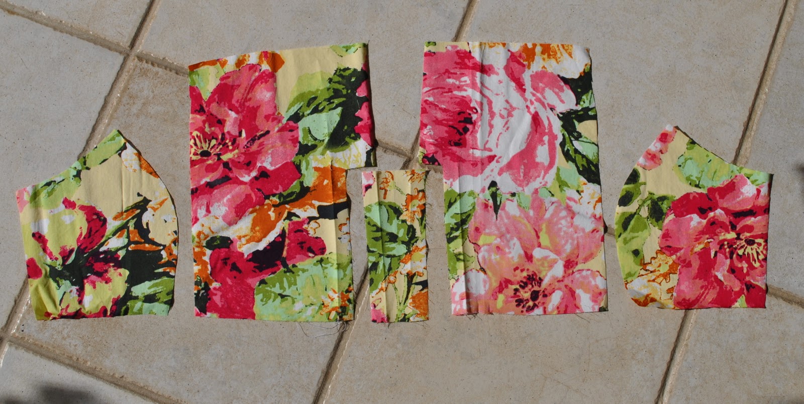 I also wanted a waist tie at the back of the dress, to pull in the waist and nip it in. This was a simple matter of cutting out two long rectangles, of equal width to the back midriff pieces, with a long angled edge at the end.