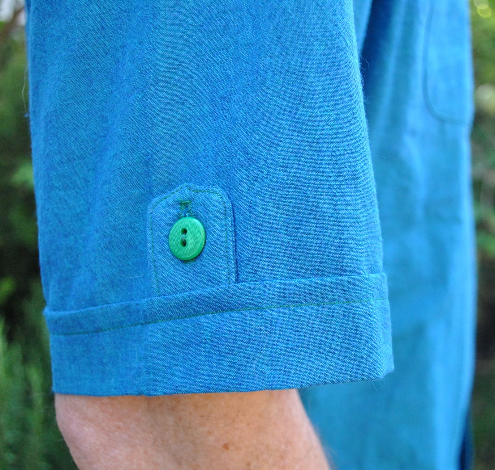 This particular shirt, another Burda 7767, was made using shot cotton in True Cobalt, and is a Christmas present for my husband. I had just made for him a special (imo) new shirt for his birthday recently, but I ran up this other new one as well since I didn’t want him to feel left out when the others were all opening their gifts of handmade clothing on Christmas morning. However. This is the sixth mens shirt I’ve made in the past six weeks, and you might imagine I was becoming just a tad shirted-out by the time I came around to this one…? (if so, you imagined correctly) It was a struggle for me to get enthusiastic about finishing this last one to the standards (ahem) I’ve set myself and that my menfolk have become accustomed to… 🙂