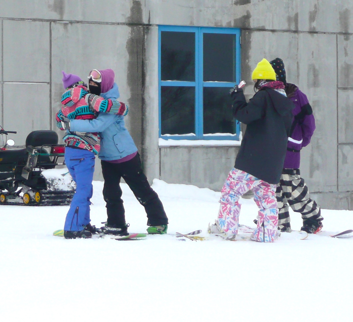 I admire this. The girls’ ensembles are equally fun. Hmmmm, perhaps should have left the ski purchasing until we got here… now I want to trade in my boring white pants for, say, something in neon green plaid…