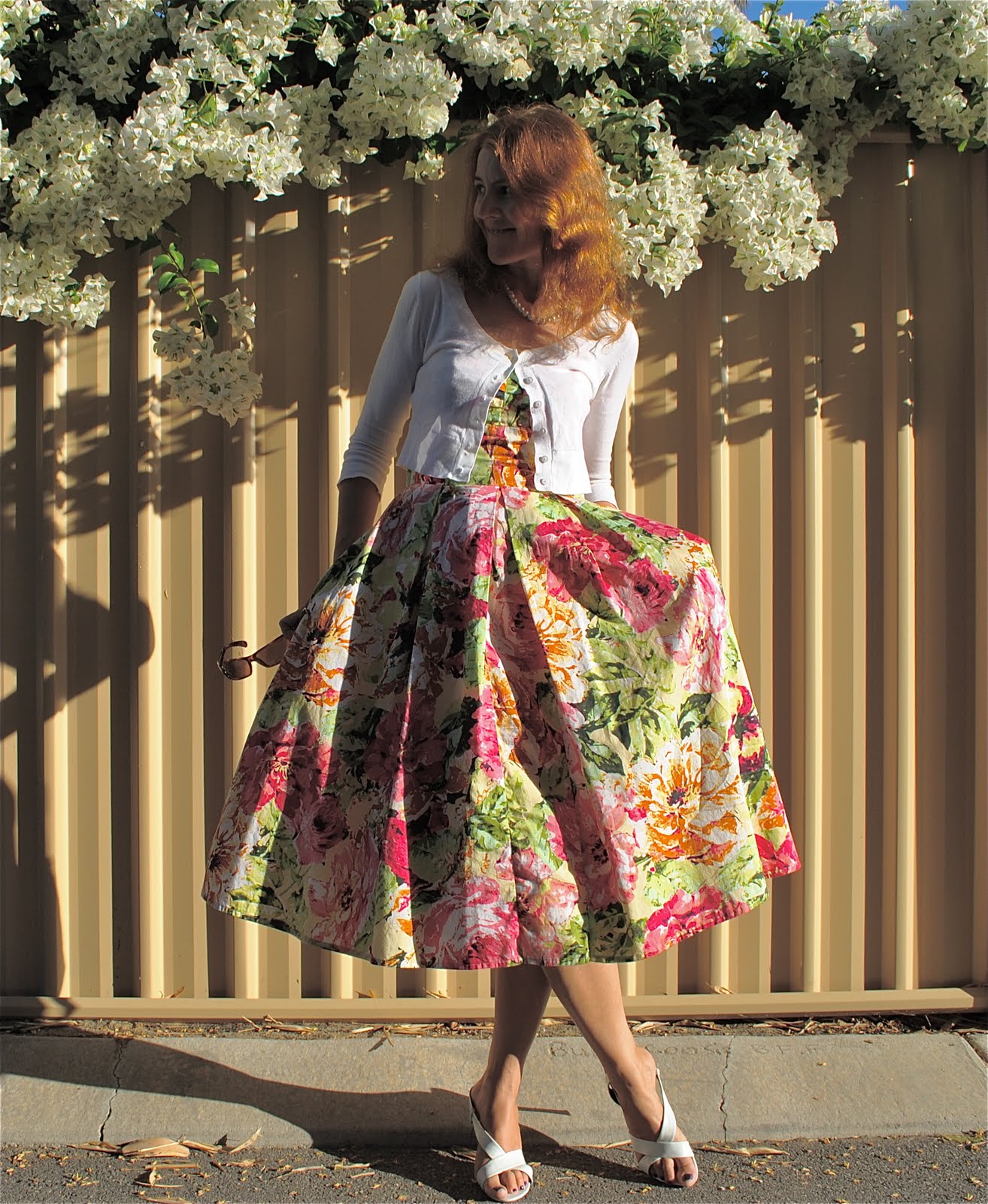 As far as the photos generally, I like the top one best. I like the play of sunlight and shadow, both interacting with the gorgeous dress. And the brightness of the scene is, knowing you come from Perth and it is bright because the sun is so bright there, makes me want to go to Perth. You are also, in a way showing Perth off, not just your clothes.