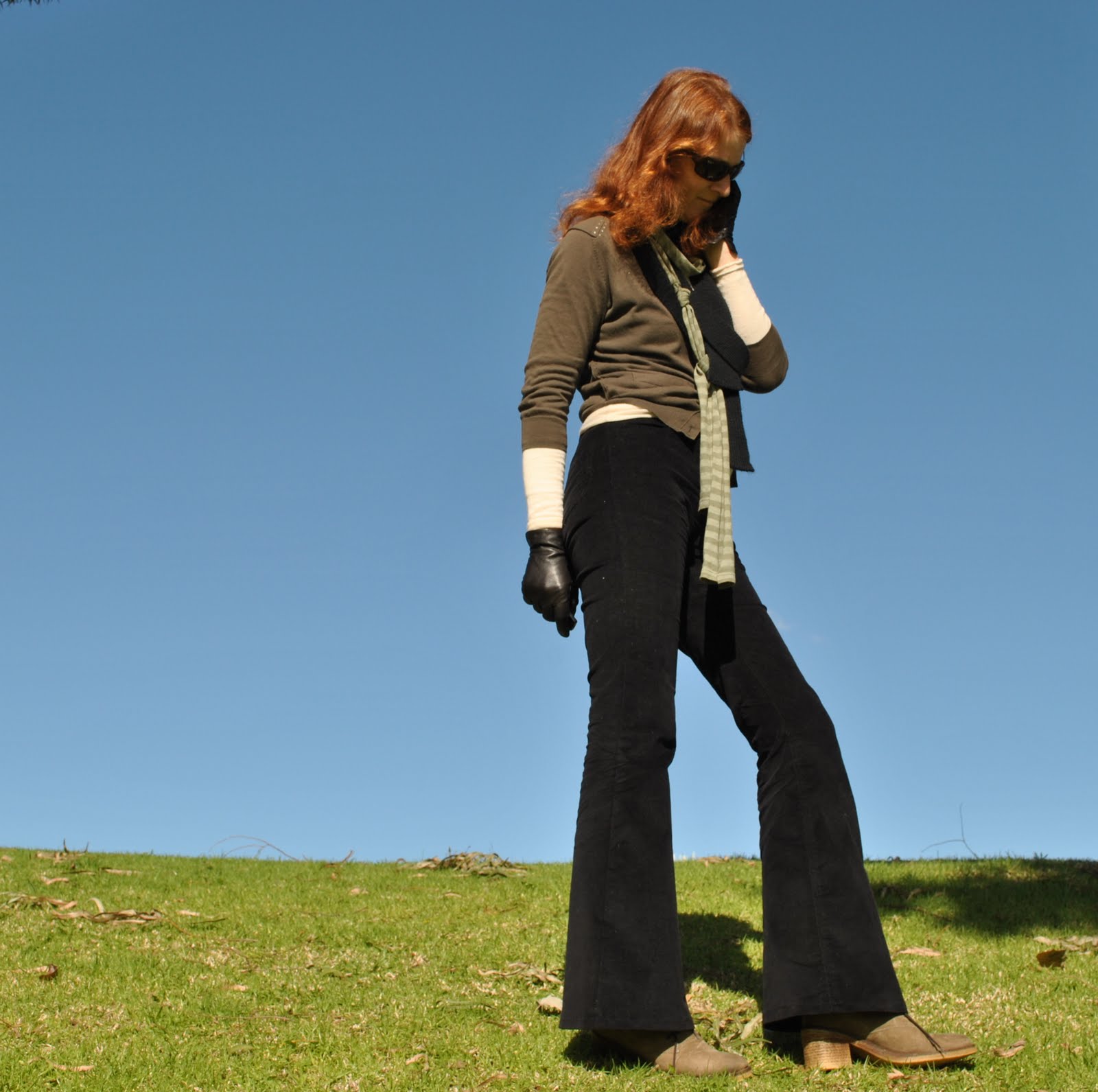 **The gloves… It was flipping freezing this morning; 3C! Although we had hit our high of 16C when I took these photos I left my gloves on because I thought they added a certain something to my outfit, a sorta chic that was lacking without them… And I was pretty stunned to see a guy in shorts and a singlet sunning himself on the beach during our walk today! Decided he must have been a British tourist… 😉