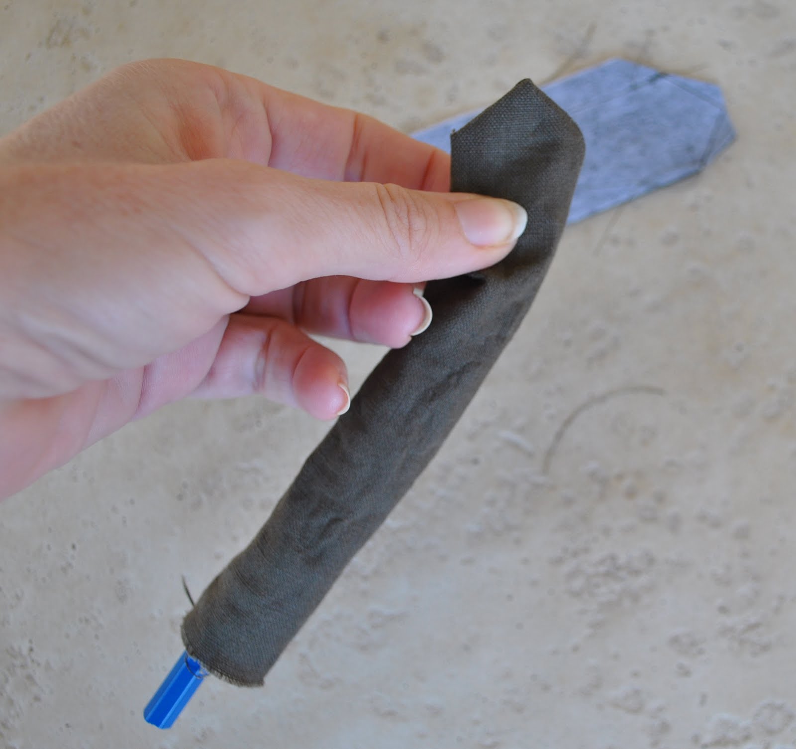 Turn the tabs right side out through that short open end. I know there are proper tools for turning (which probably cost a bomb) but I use a not-too-sharp pencil for this job, and wiggle it carefully into the corners teasing them out, but not allowing it to burst through the stitches!
