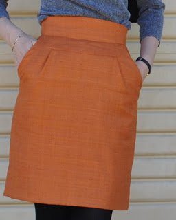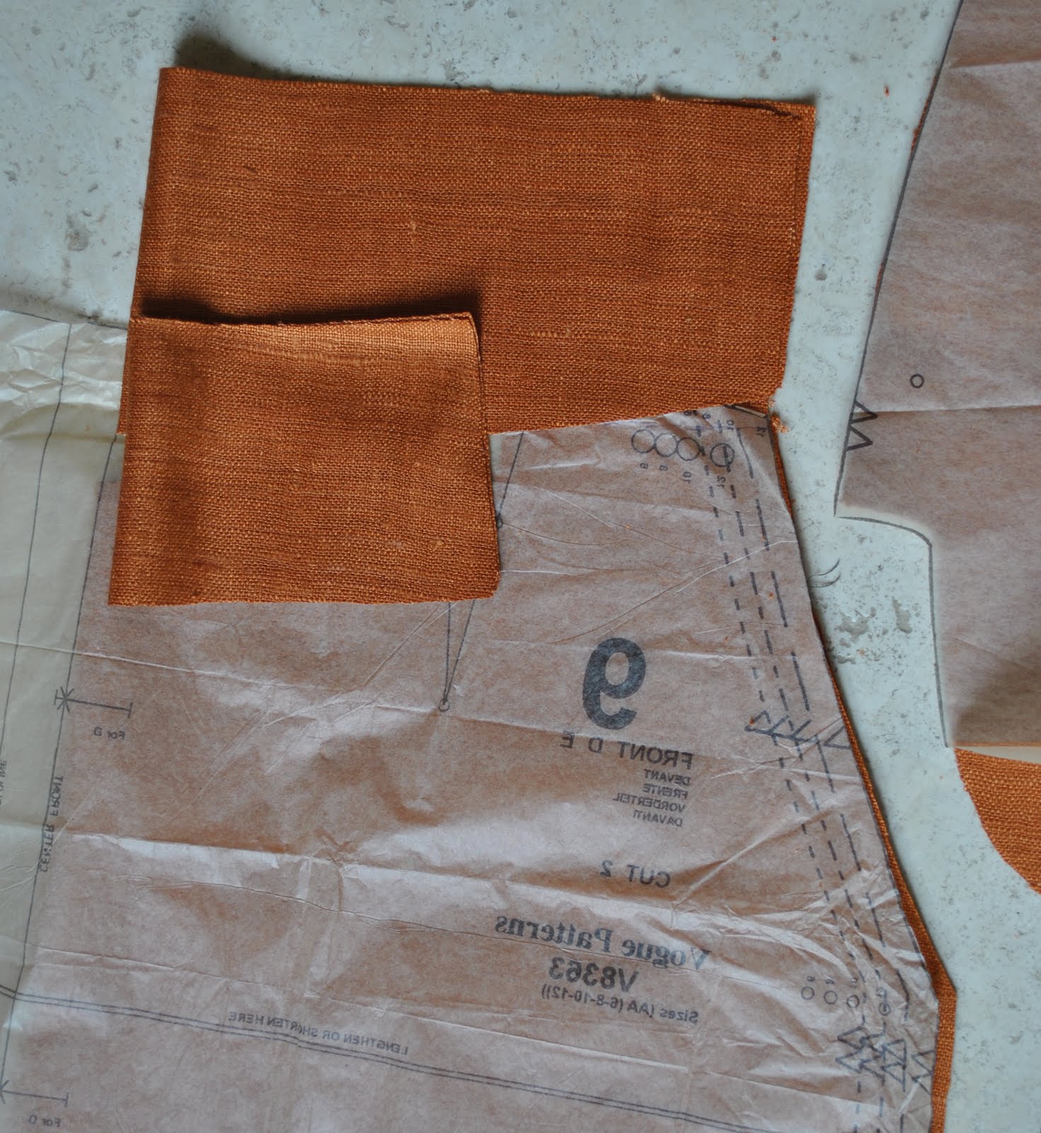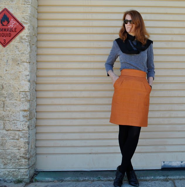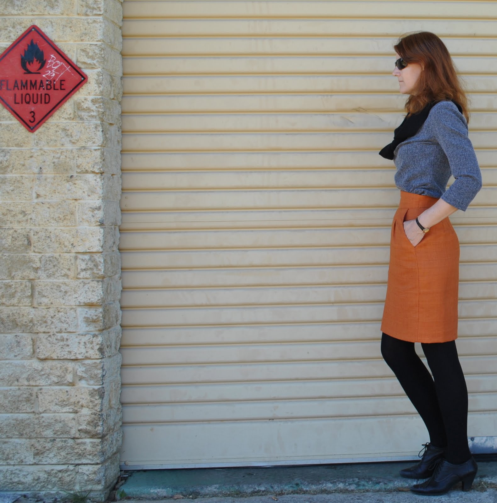 Skirt; my own adaptions of Vogue 8363, burnt orange silk hessian, my review of this pattern here