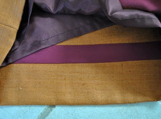 When I bought the burnt orange, there was no matching lining fabric nor zip to be found, so instead I went wild and bought a contrasting maroon lining and zip, and also for the cotton to make my HongKong seaming tape and hemming tape. You can see I went happily all out on the HongKong seaming there… this silk hessian is one of my favourite fabrics but frays like a madman… so raw edges are a big no no. I covered a button with some of the fabric, and also made a bound buttonhole, but took absolutely no close-ups of this. For a reason… After viewing Sherry’s superb bound buttonholes I’ve decided mine is nought but a travesty of a bound buttonhole. I salvage my pride by saying humbly yet again that this fabric frays like a monster… I did my best but it is sadly far far from a perfect thing.