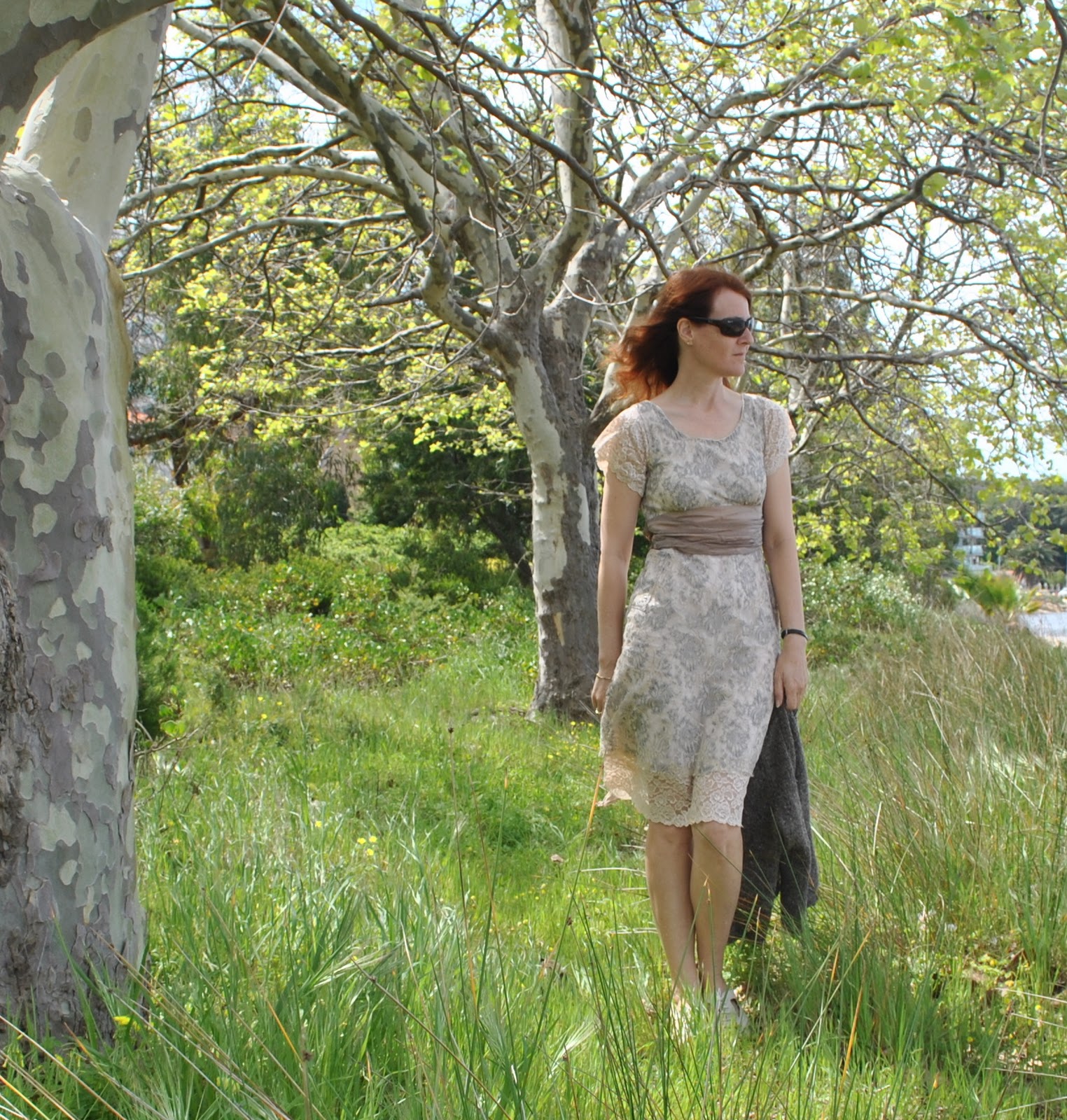 Being lace it can look quite dressy but I happily downgraded this dress to casual status a while ago, and so it gets worn anywhere anytime now.  Weather permitting, obviously…!  It used to be one of my formal choices and I have worn it to weddings, cocktail thingy-s and dressy afternoon gatherings but I think it looks perfectly elegant with thongs or low casual sandals for ordinary days.  I think favourite dresses should be worn whenever, don’t you?