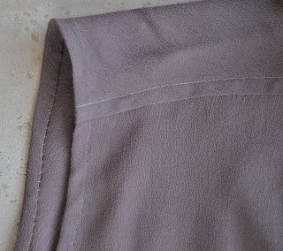 The top is not difficult to make, the only proviso is that care must be taken with the finishing. Since the hemlines are sometimes inside sometimes outside the finishes are visible and so have to be done well. Hence, the side and shoulder seams are flat felled, and the lower/upper hems are finished with a self bias strip and hand-stitched down to the other side. So the bias strip ends up half on the inside and half on the outside and switches from one to the other halfway along the hemline. Hmmm, if you’re not understanding well it’s kinda hard to explain. But nowhere near as hard as it was getting those silk bias strips stitched down neatly in an even width hemline… whew. This fabric is soft and drapey, but it has quite a springy robust nature and was not the slightest bit obedient.
