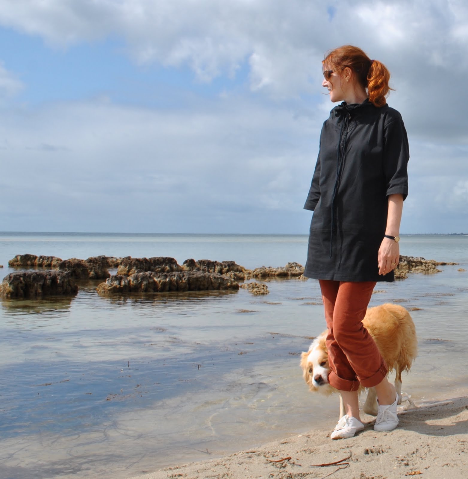 It's all so lovely, you, the dog, the color palette,and goodness the beach…sigh. An inspiration and I do like the tip about the jeans, just made some a tad short, might try this even though my legs are a less then elegant length:)