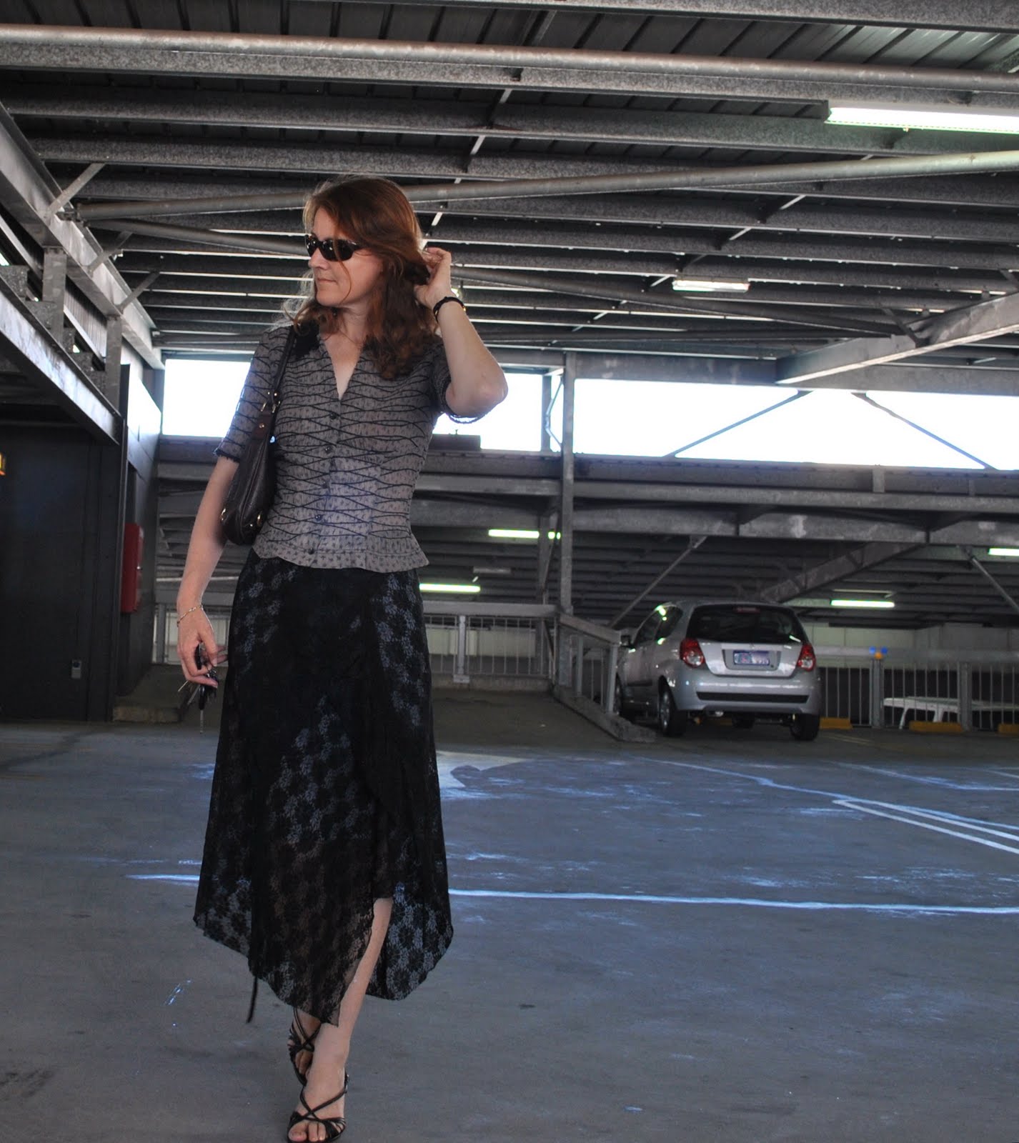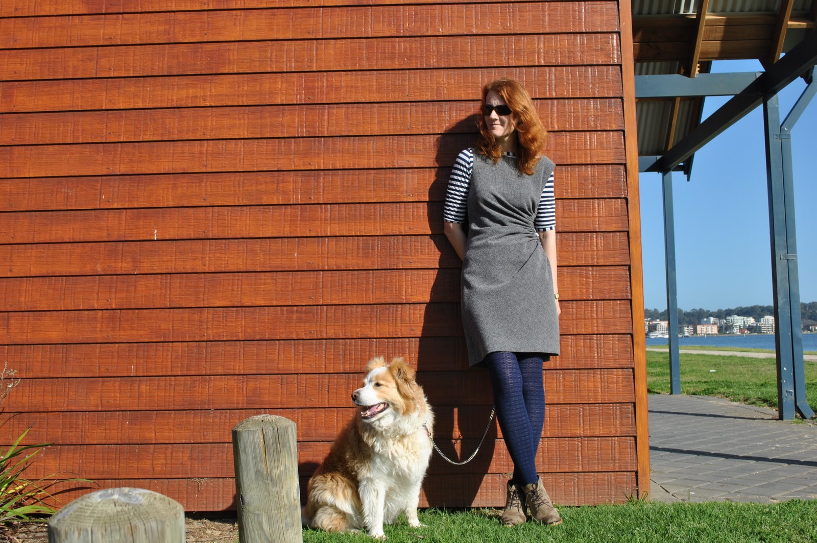 I would also like to assure everyone that I am not always swanning about in paradise; and cropping fabulously beautiful scenery from my photos either. A lot of my locations are very very prosaic and ordinary, and usually I am just chopping out boring stuff that contributes absolutely nothing to showing off my sewing… to give a few more examples: