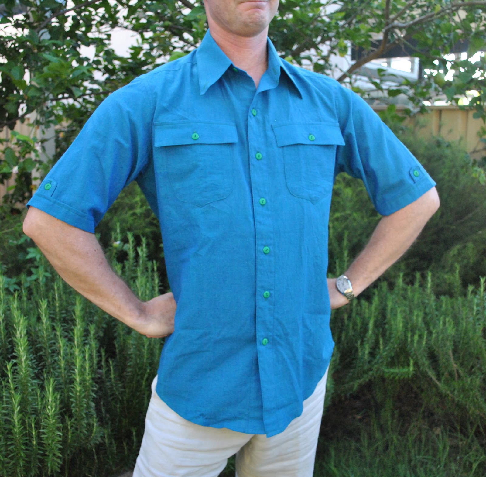 I am wishing my husband cared for pockets, your shaped pockets and matching tab details make the shirt so nicely finished and individual.