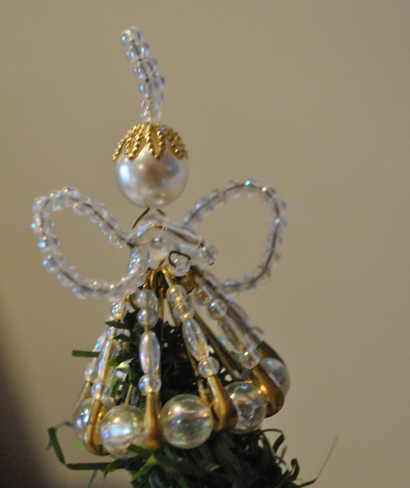 a fairy… a lot of girls of my age would have come across this project, made out of safety pins and beads. I think it was out of a magazine, or on Better Homes and Gardens, or something like that. A group of my friends and I all made one together. Her place is on the top of the Christmas tree, when she has a fairy light stuck up under her skirt (keep it clean now) she actually looks pretty speccy*! (* Aussie slang for spectacular)