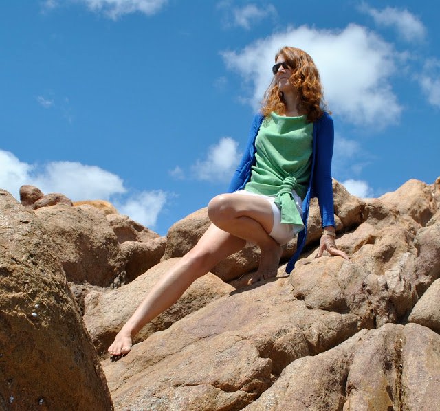 Bitterly disappointed, she took it off and hung it out of sight for a few days; busied herself with easier projects, like making Pattern Magic stuff out of scraps. Then took out the Eggplant costume again (for this is how she now thought of it) Studied it. Had a brainwave, and chopped off 14cm. Pinned the hem, hung it up for the next few days again, blah blah. Tried it on. Lo, and the shorter length had worked wonders! Gone was the bulbous look! The seamstress felt victorious. Hand-stitched a narrow hem. And wore the dress out. And catching sight of herself in a shop window, noticed in a certain light a sheerness to the dress, the shadow of underwear showing through, that had not previously been apparent in the bathroom mirror…
