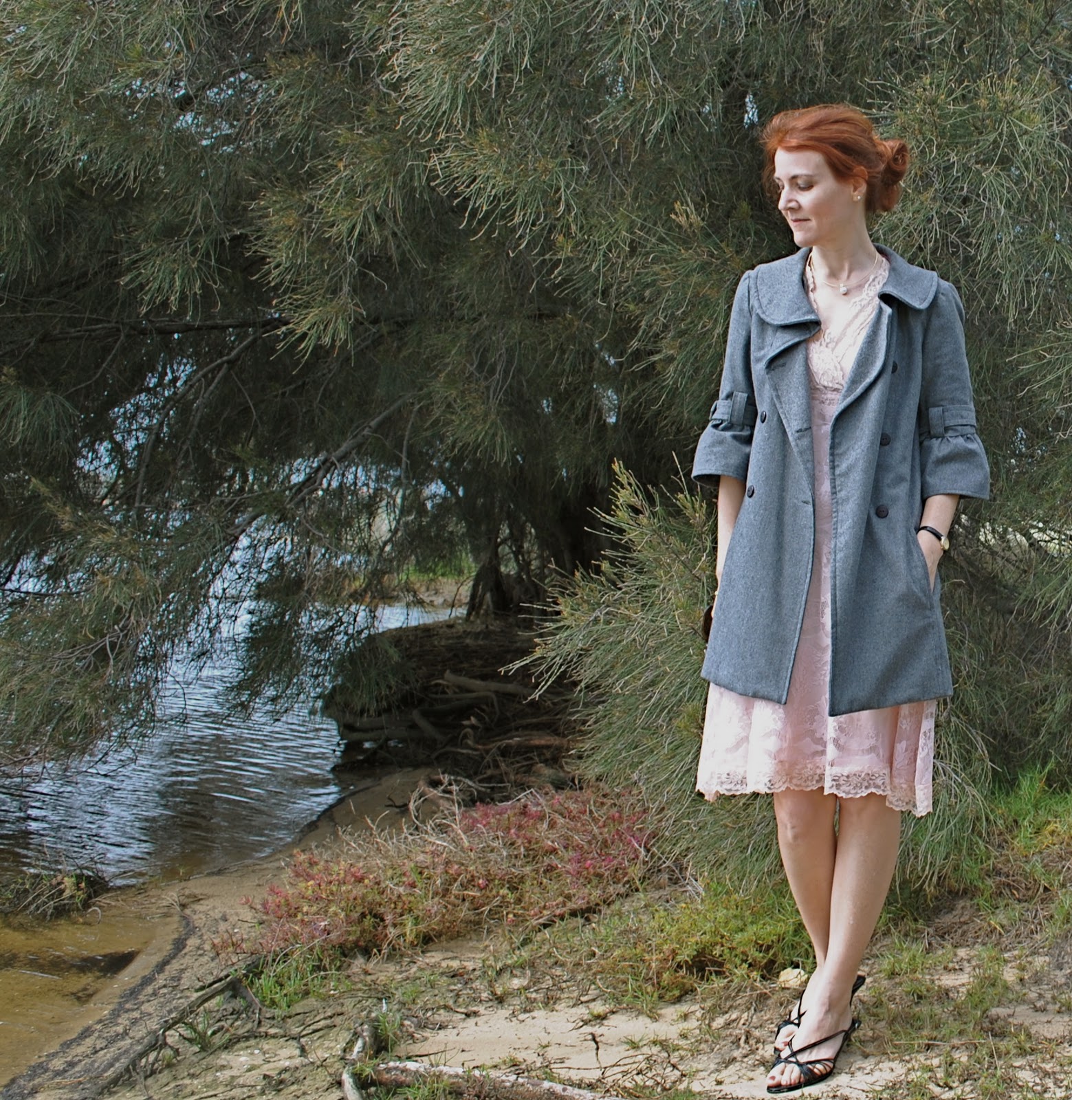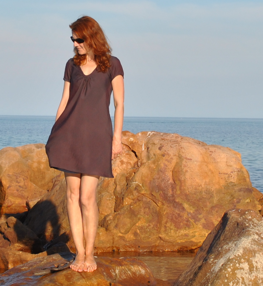 June; here. This is one of my favourite pictures I’ve ever taken for this blog…. just the colours of the morning sky and the glassiness of the river and “the twirl” (a mini-challenge within the Me-Made June Flickr group)