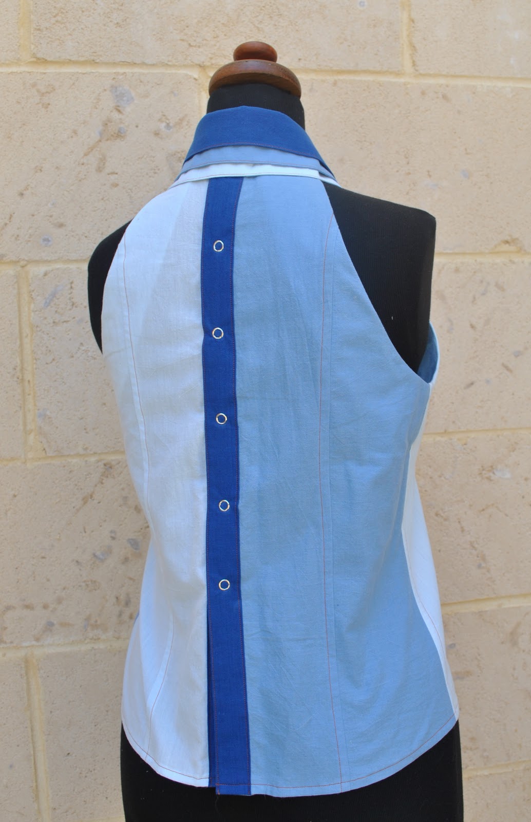 Astounding. I am in awe of your creativity. This has got to be the coolest shirt. Love the triple collar and the different shades of blue.