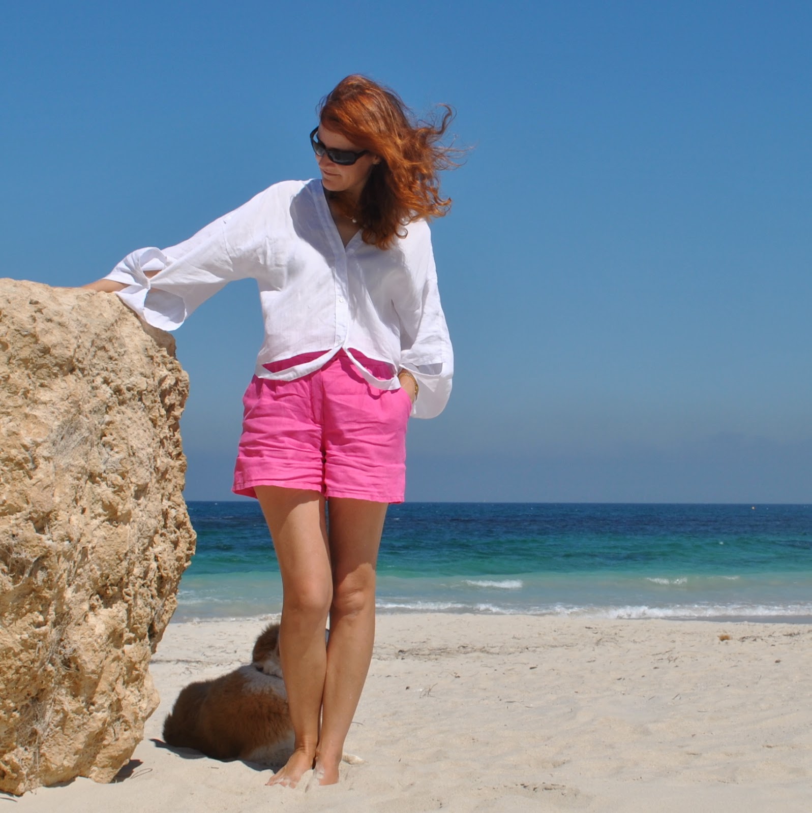14. I love the way you can manipulate fabric and thoughts and get something fantastic. I really love those shorts – the colour against the back drop of the ocean is magnificent. What a great place you live near.