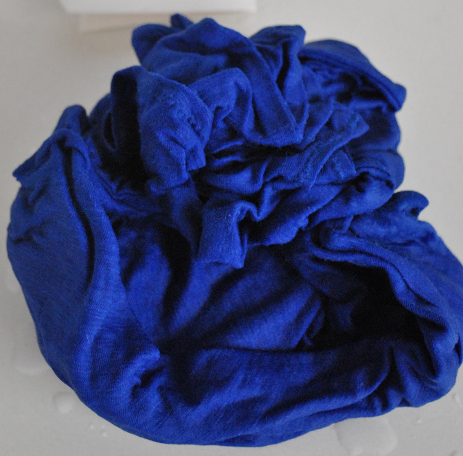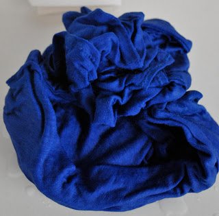 It started out its life this colour below, and then subjected to 1/4 tsp iDye, in Brown. I initially bought 2m of this brilliant blue fabric which as well as being very cheap had the added advantages of being very light, very drape-y and 100% cotton. However I only have room in my life for one bright blue top and so dyeing was always on the cards for anything made out of the leftovers.