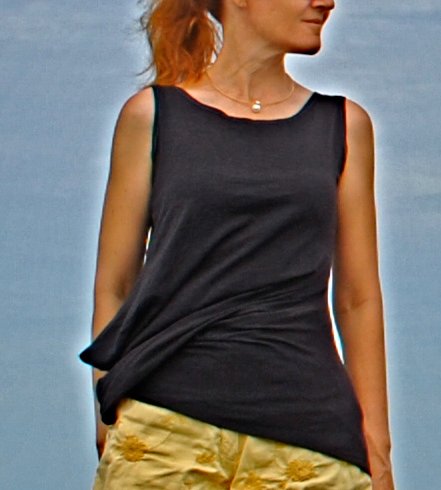 I really like that this is a tank top, but it is so much more than that with the interesting shape and texture on the lower half. Do you find that when you dye fabric it retains its color okay in the wash?