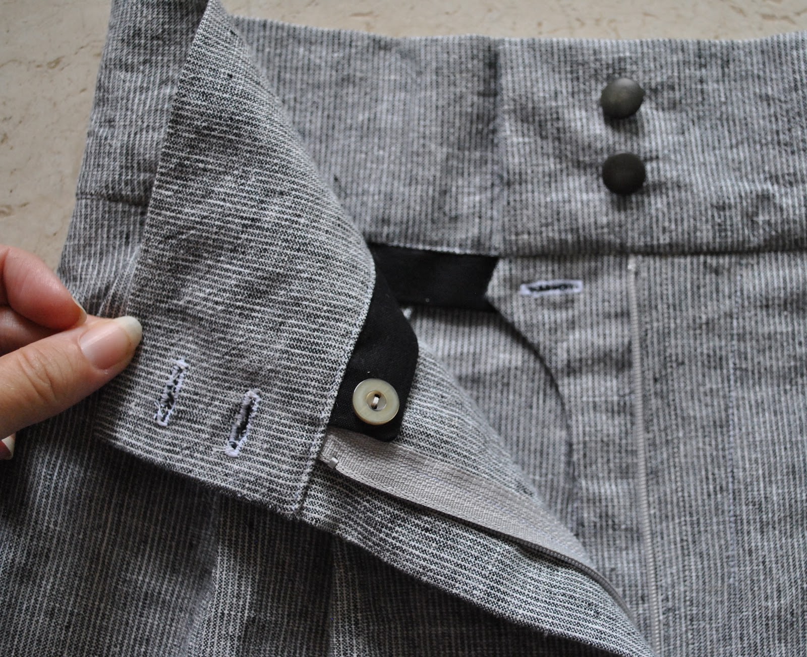 A true assesment of the fly front. The french fly, in fact all of the waistband construction details are just beaitiful.