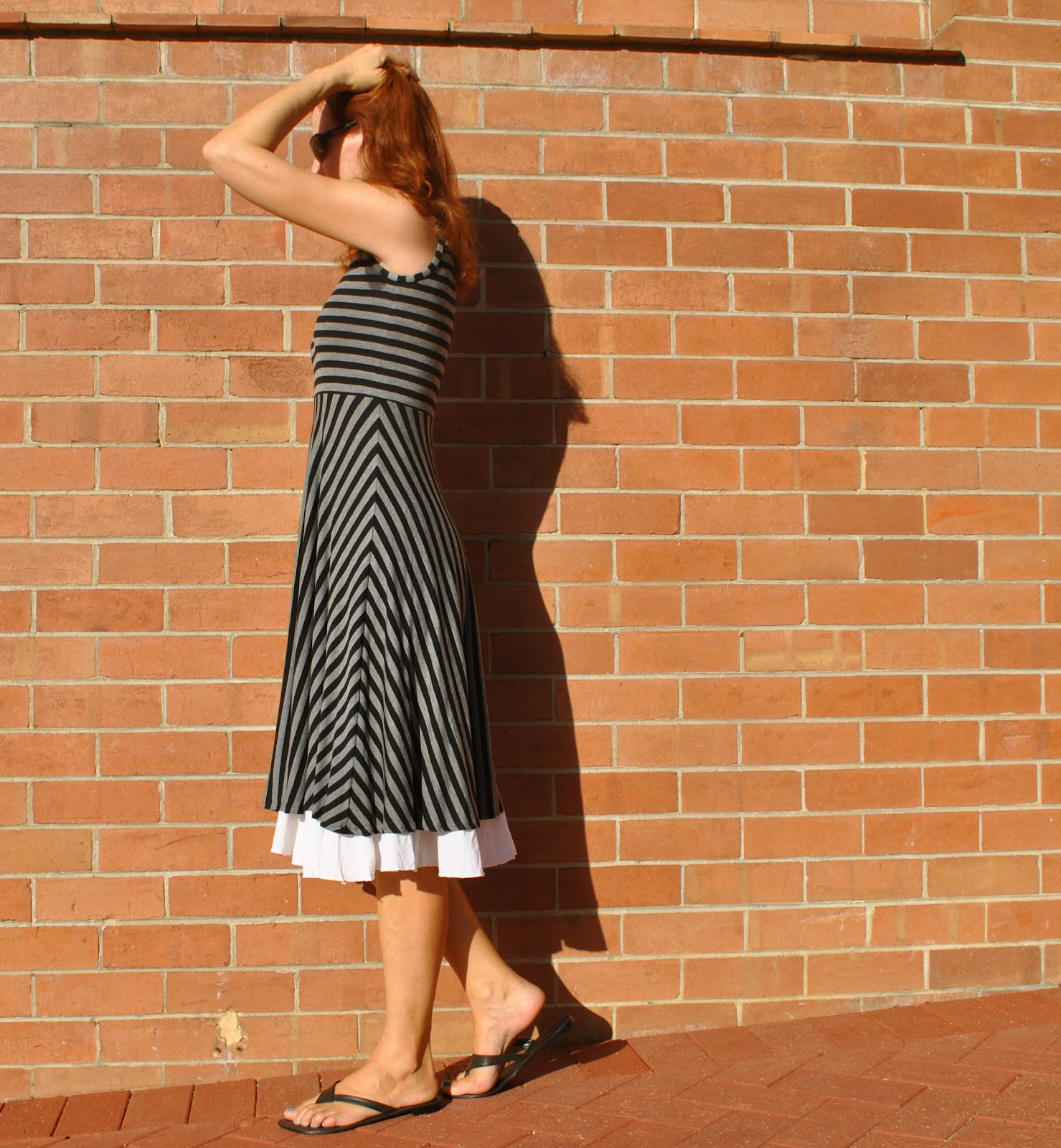 Wonderful stripe matching, setting the bar for the rest of us 🙂 Love the dress and that is started as a tank top.