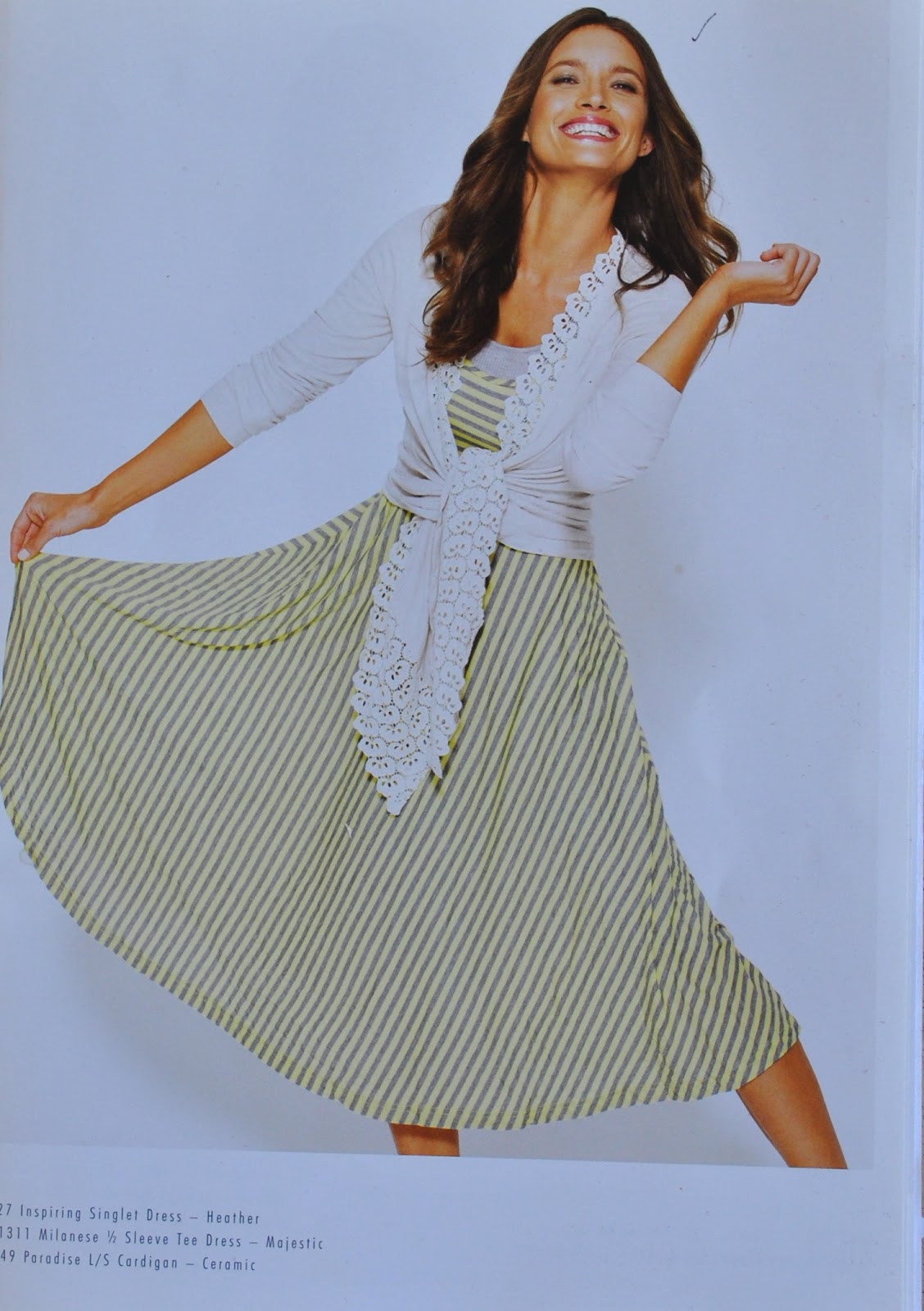 I love this dress, the way the directional stripes work together is fabulous. It looks great with the petticoat peeping out at the hem as well. And a bonus t-shirt too – terrific.