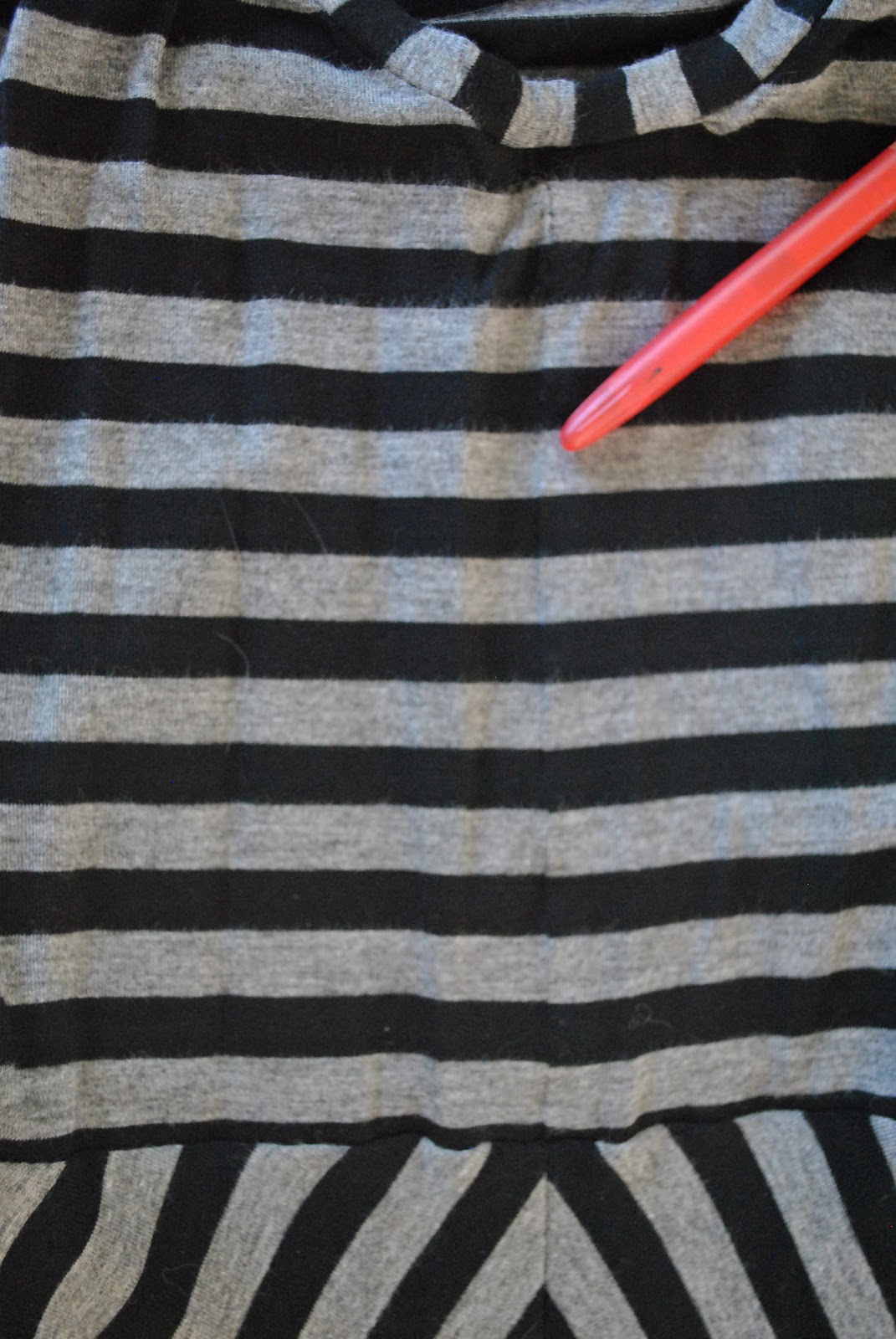 The red pen below is pointing to a bodice side seam. Can you even see it? (said with an unseemly lack of humility)