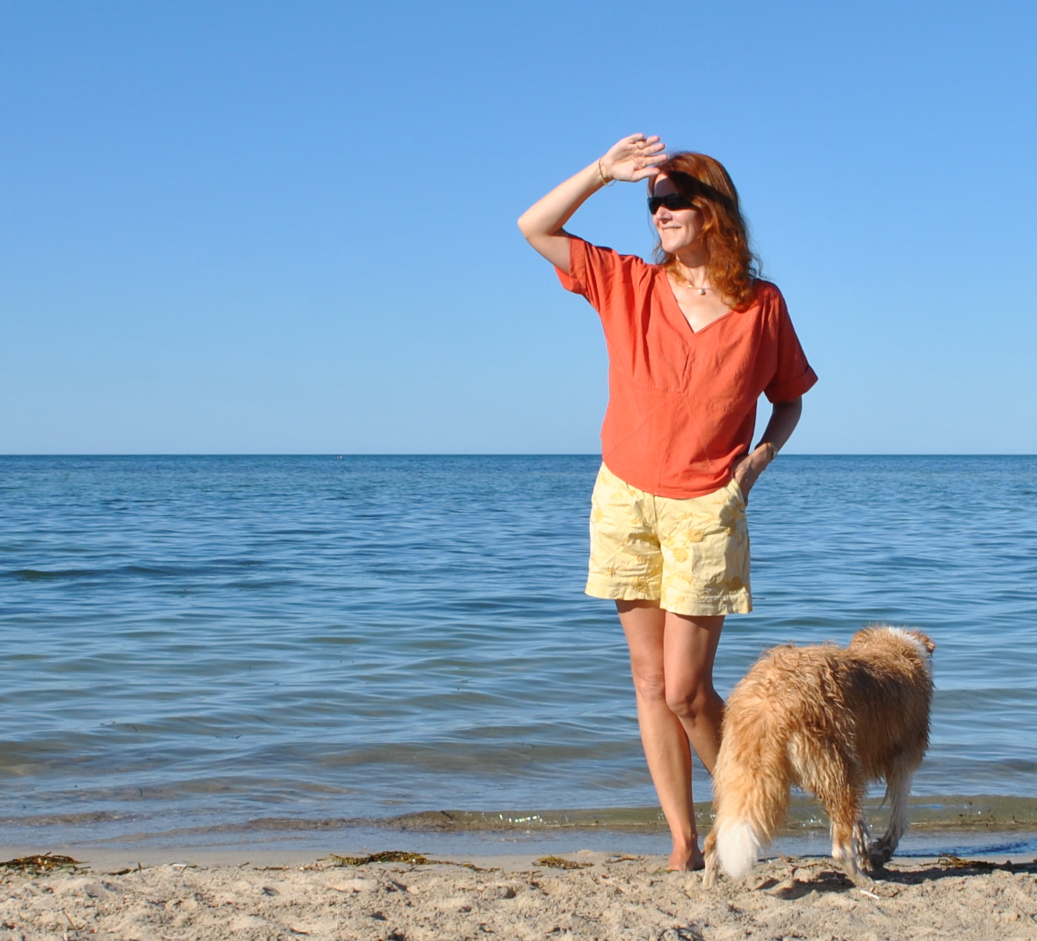 Top; Vogue 1247, of orange cotton, details and my review of this pattern here