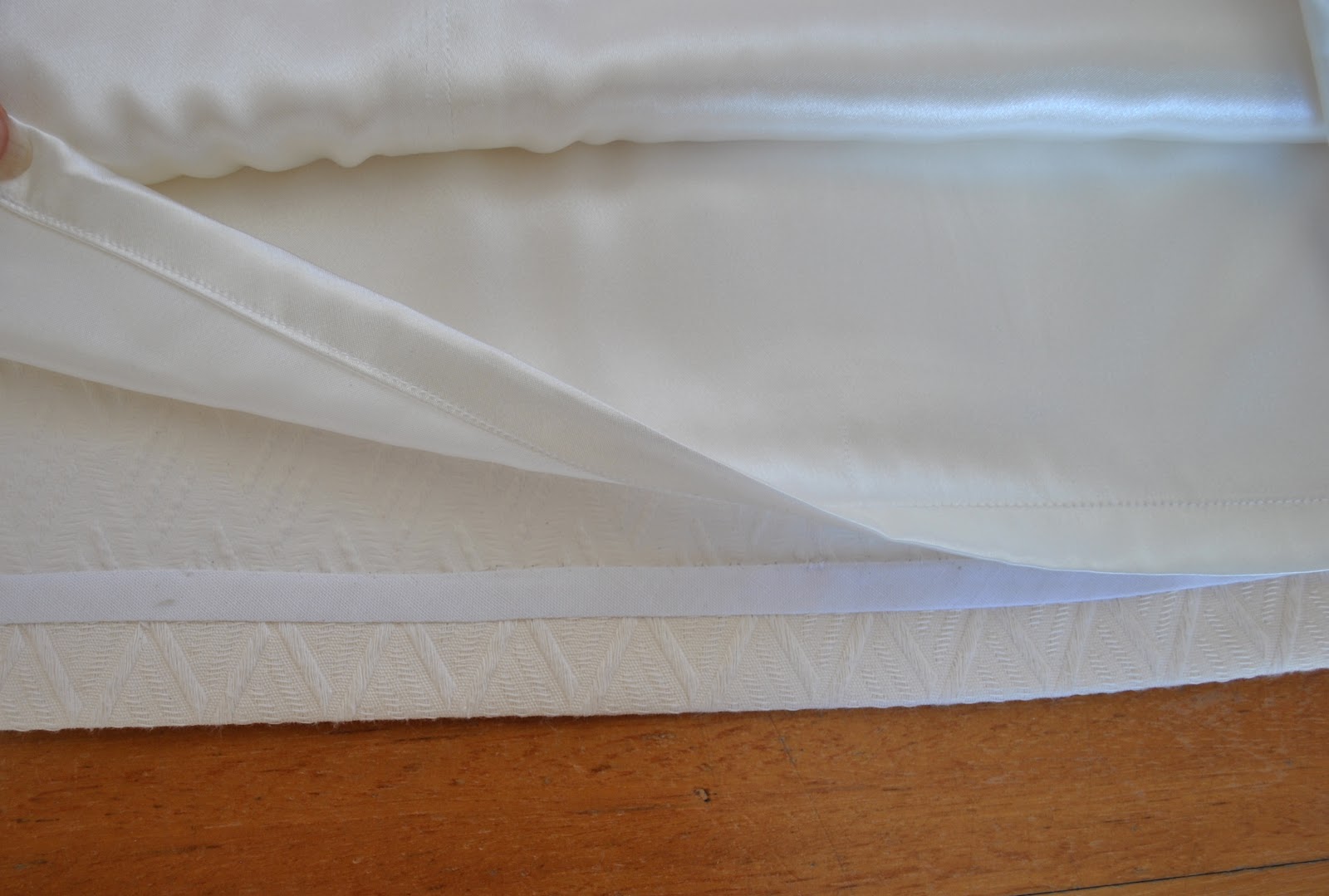 Skirt; Vogue 1247 lengthened and lined, heavy cream curtaining fabric, ivory delustred satin waistband, ivory satin lining, my review of this pattern here