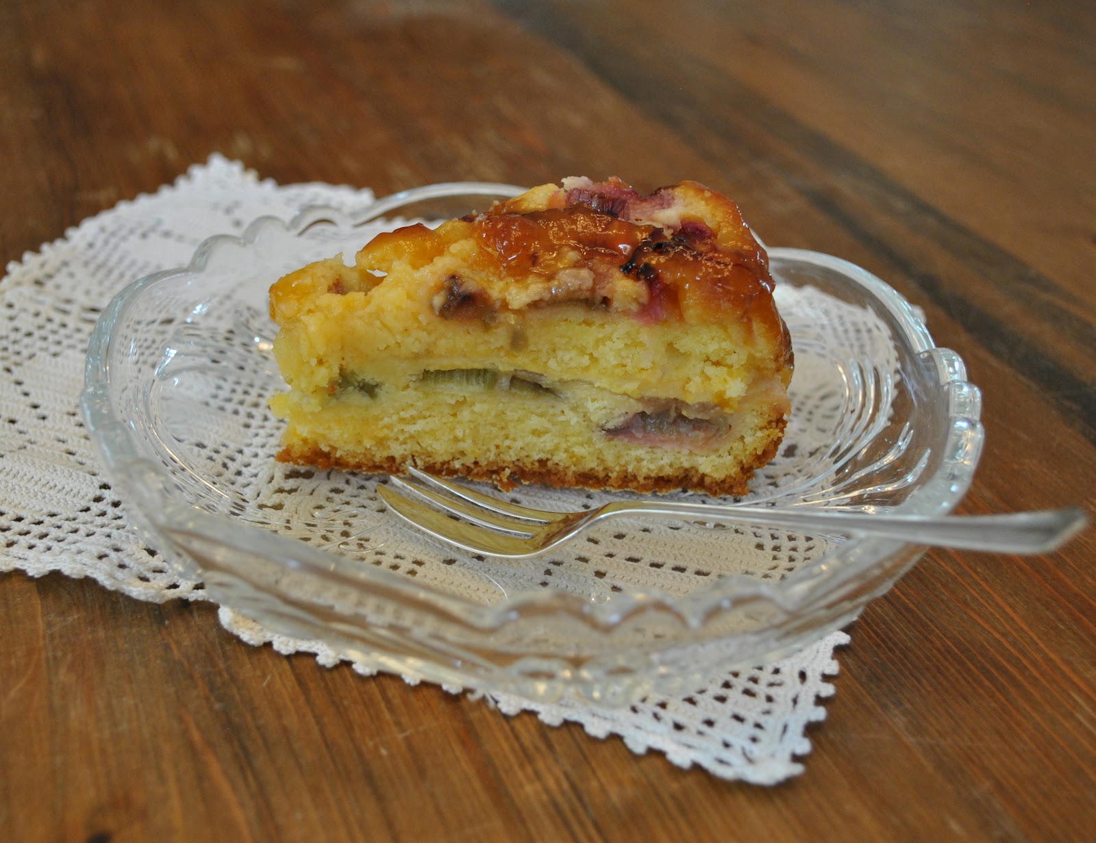 (rhubarb and pear custard cake)