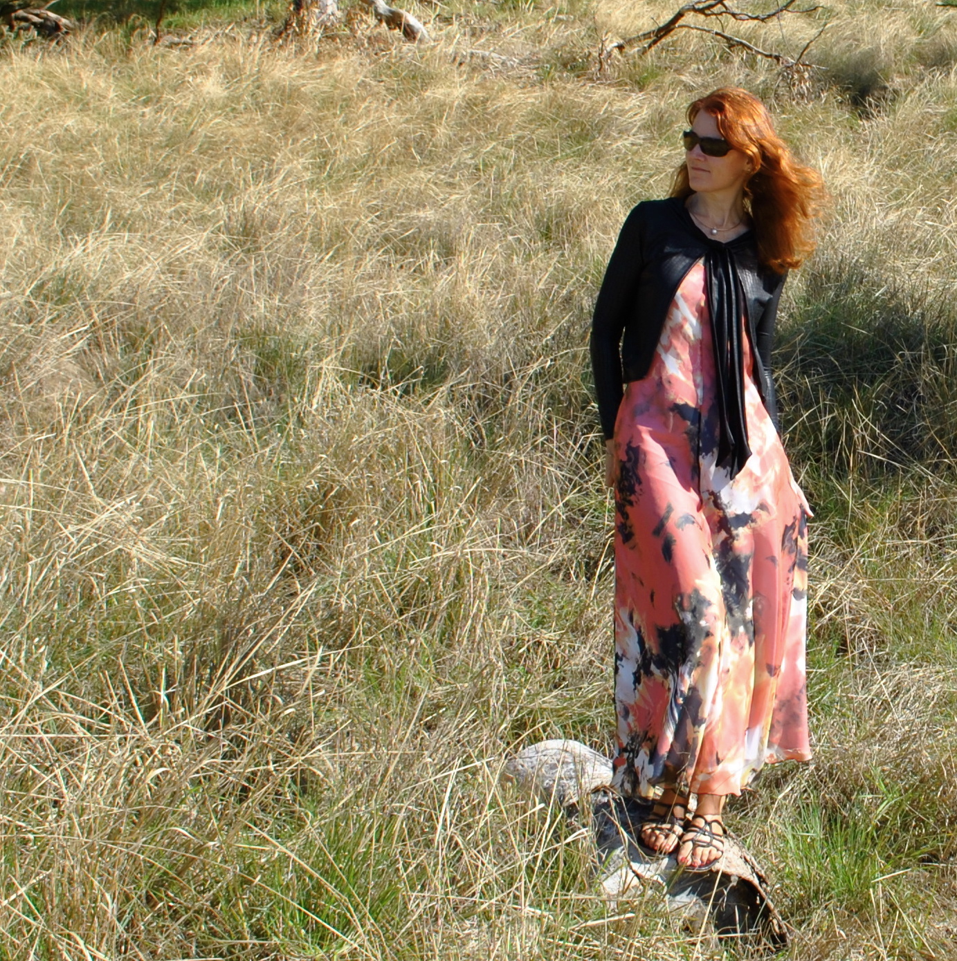 Today is a beeautiful sunny autumn day but with a bit of a nip in the air; so I am wearing my chiffon maxi-dress made last October, and my little black snakeskin cardi, that is a few years old now but is a good match shape-wise and style-wise for this dress. Actually, I experienced a marvellous moment this morning; marvellous, that is, from the point of view of a middle aged woman such as myself. A young twenty-something girl stopped me in the street, and said “That is a completely awesome jacket! I LOVE it!” Oh, man, call me sad, but that moment really made my day. So sweet! Which made me think; unprompted compliments, and especially when they are about something one has made oneself (not that she knew that) do give such a disproportionate lift to the complimentee, over and above the good intentions on the part of the compliment-er. And the importance of paying that forward. So, when I trotted down to the supermarket later I said something nice to an elderly lady about her hand-knitted cardigan. Her bright happy smile made my day even more bright and happy too!
