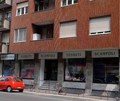 I had googled fabric stores in Milan prior to getting here but came up with zilch. Then one afternoon, sitting in a cafe watching all the beautiful people strolling by, I happened to catch sight of a girl holding a carrybag printed with the unmistakeable motifs of a fabric store; roll of fabric, scissors, measure rule. Could barely contain my excitement. Fortunately could make out the name of the store, and immediately looked it up and headed out there… pronto