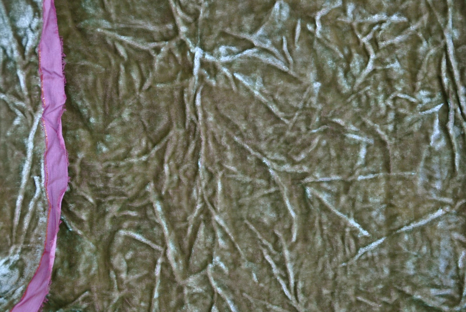 Doesn’t look very enticing from the outside, huh? Appearances can be deceiving; this is a small store it is true, but stuffed to the gills with gorgeous fabric. Prices, mediocre. Not as cheap as Milan, not as dear as Rome. I found here another piece of silk velvet; green pile on a pink background, giving it a mossy appearance. This is one of “my” colours, so I grabbed it, thank you.