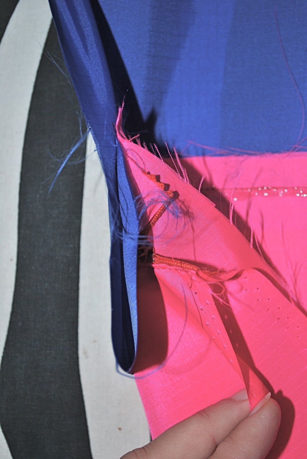 Thanks for this; I'll need to remember this when I eventually make my raincoat. Is that just white mesh you have lined it with? Mine is see through so that's a good idea. Looks like you have your own stash of fluro pink ripstop! Although looking at yours (Cassie's?) it is much brighter than mine even.