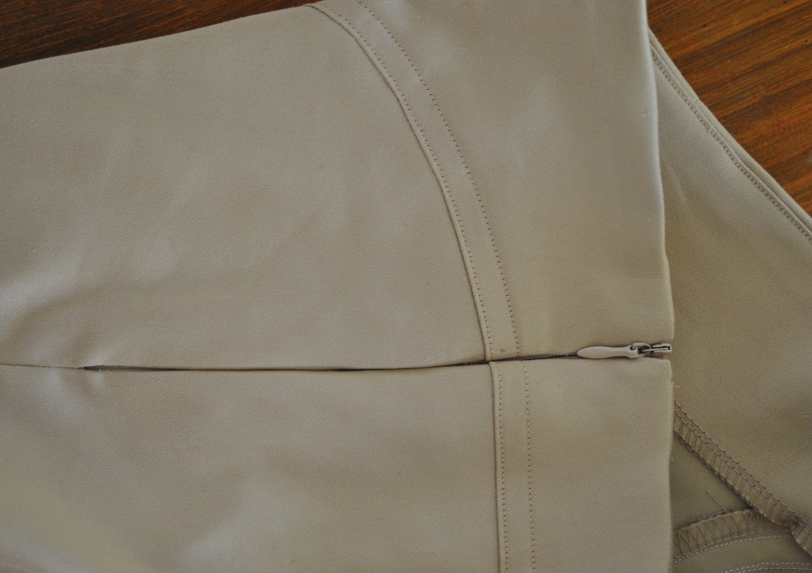 My capris are made using Vogue 1115, and the fabric is a pale sand-coloured stretch sateen remnant from the Alannah Hill fabric outlet in Melbourne, bought during a visit two years ago…. hmmm, high time it was made into something, non? Well, I think this fabric was just waiting for this very pattern, like Cinderella waiting for Prince Charming. Or was it that she was waiting for the glass slipper? Hmmm, not sure the analogy is holding itself together there… anyhow, the remnant happened to be exactly the right size to just perfectly fit the pattern pieces. And they all lived happily ever after 😉