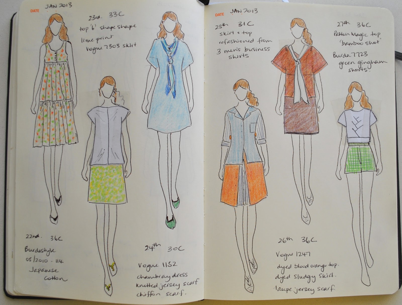 (if you’re new, I’ve pledged to wear only clothes handmade by me this year and to sketch my daily outfits in my Fashionary. I’m calling this the paper doll project)