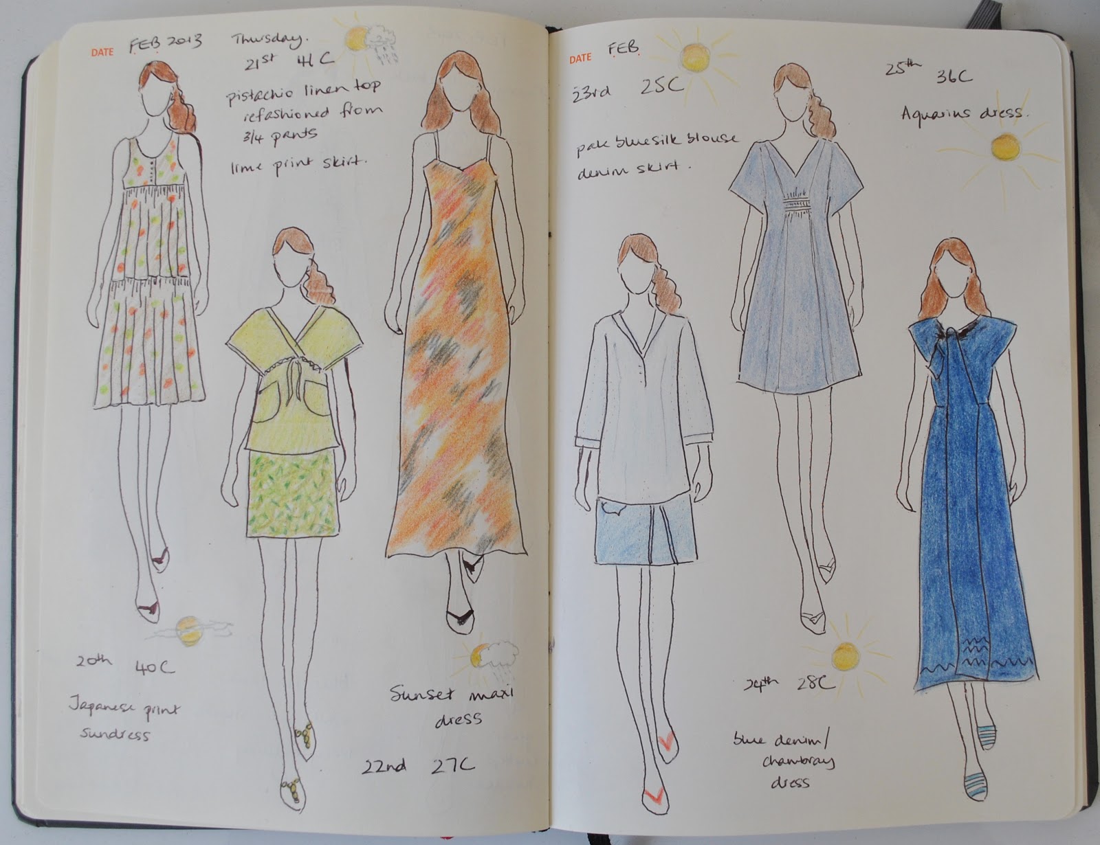 (I’ve pledged to wear only clothes handmade by me this year and to sketch my daily outfits in my Fashionary. I’m calling this the paper doll project)