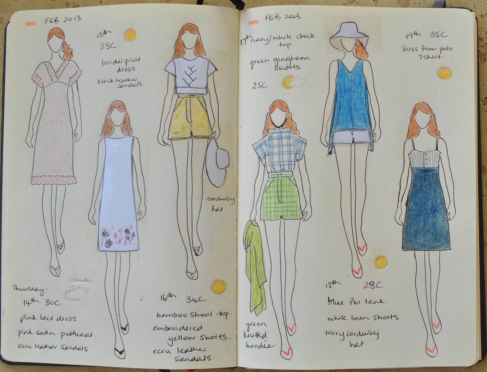 (I’ve pledged to wear only clothes handmade by me this year and to sketch my daily outfits in my Fashionary. I’m calling this the paper doll project)