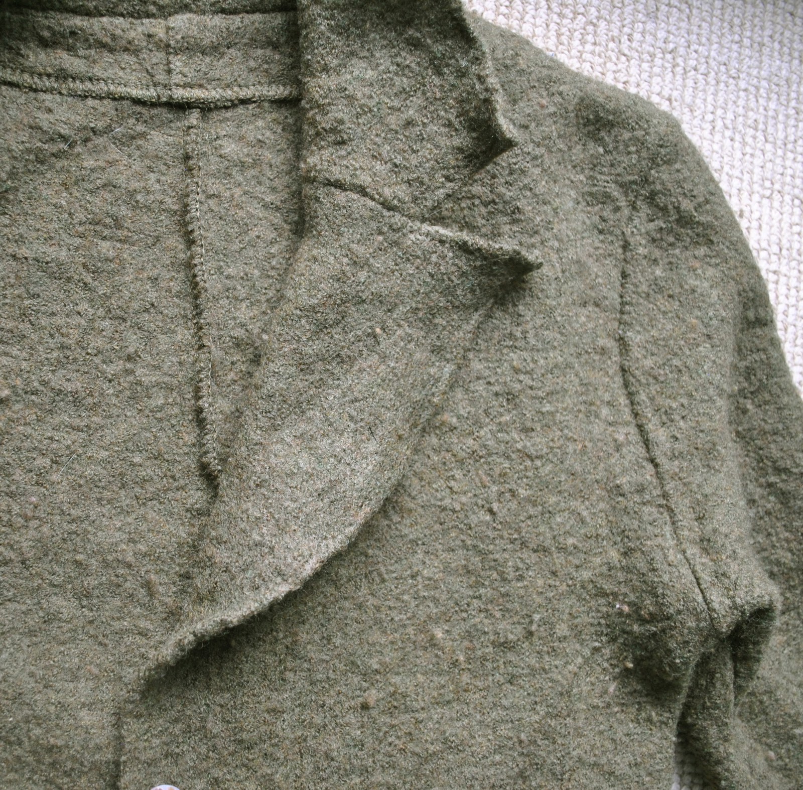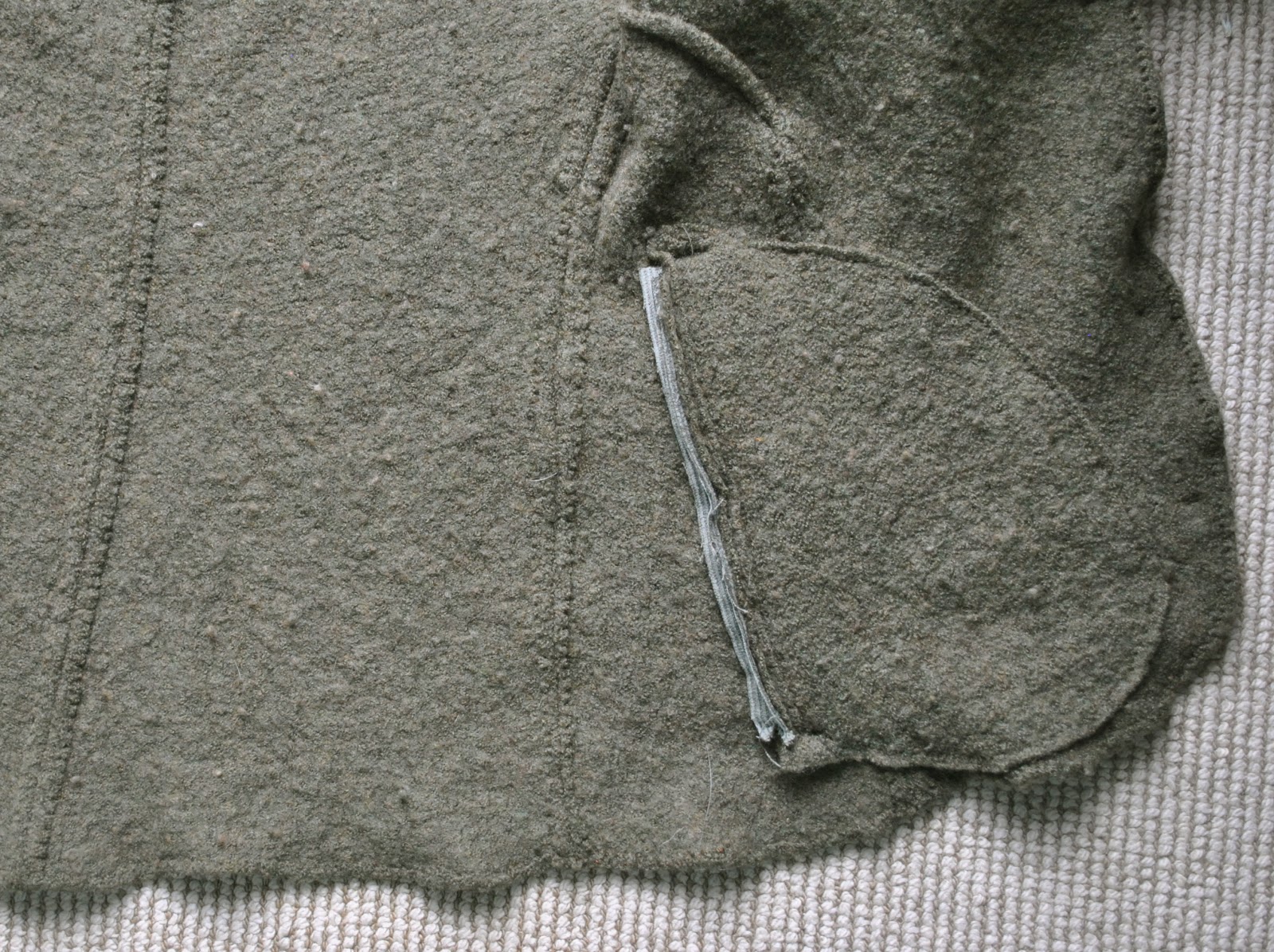 unlined cardigan, with welt pockets. The sewing lines of the welt are stabilised with a strip of corduroy.
