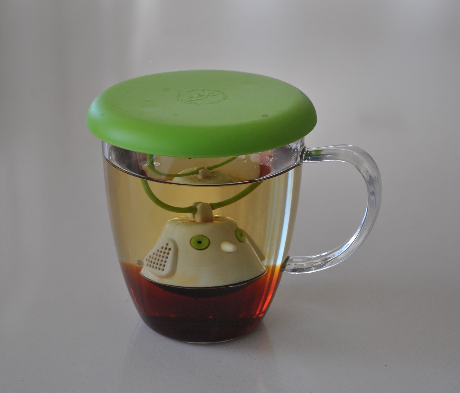 I just have a gadget that sits on top of my cup and strains out the leaves. Works great, but it's not witty!