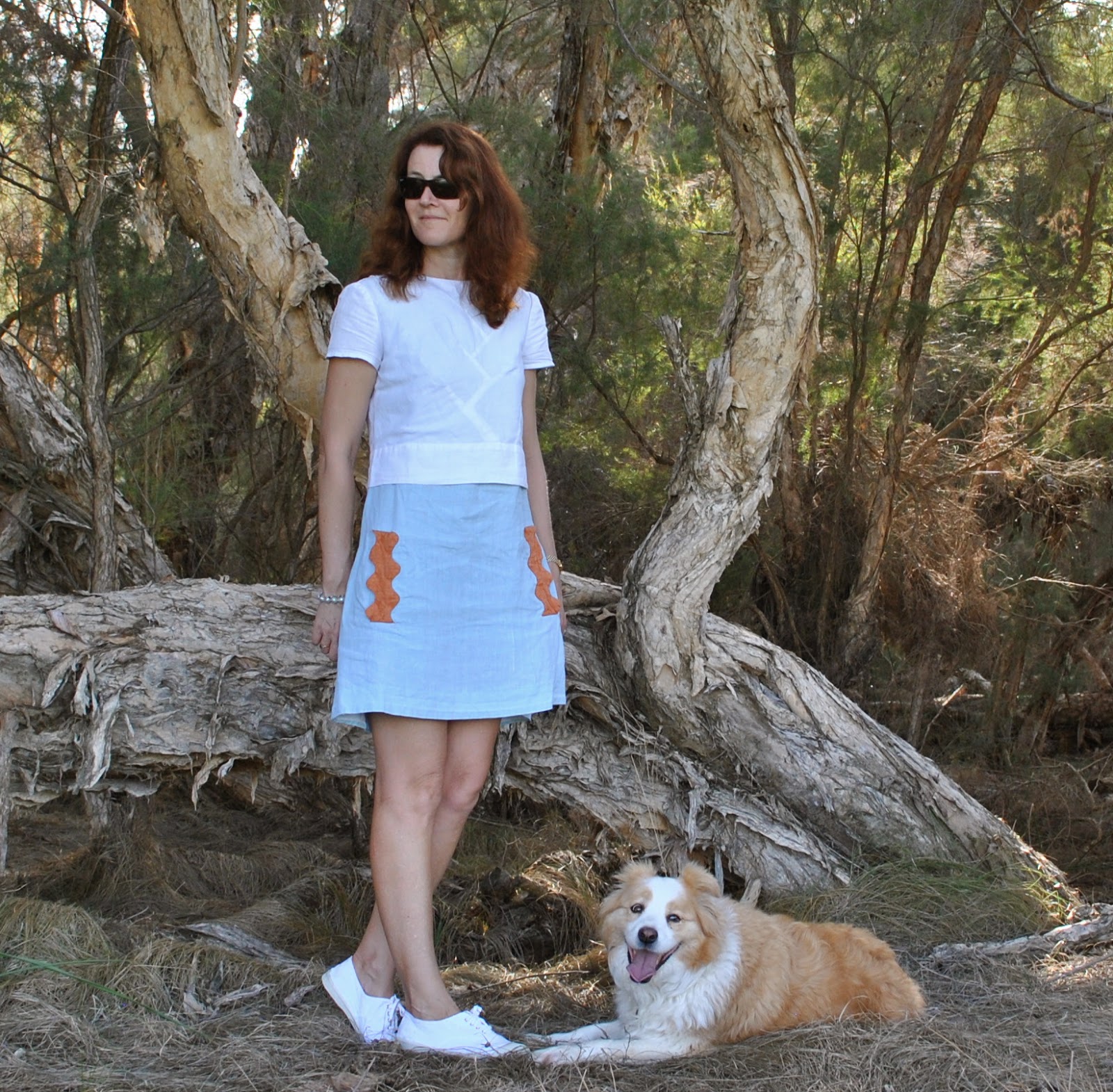 Great outfit and great picture. Both you and Sienna looks happy (I think that technically that she is always wearing me-made stuff, with her natural fur coat).